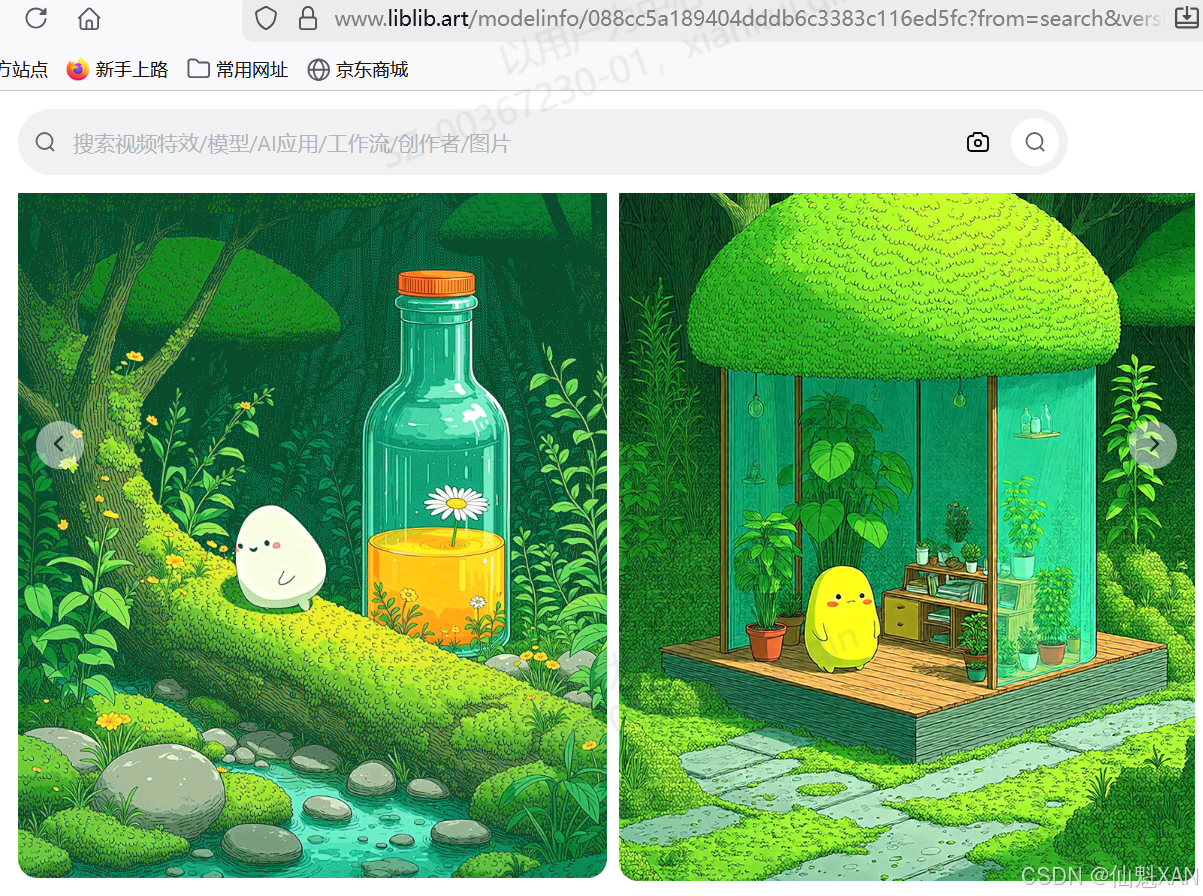 1、找到对应的"AI治愈系图片",这里是在liblib 上参考获取的
