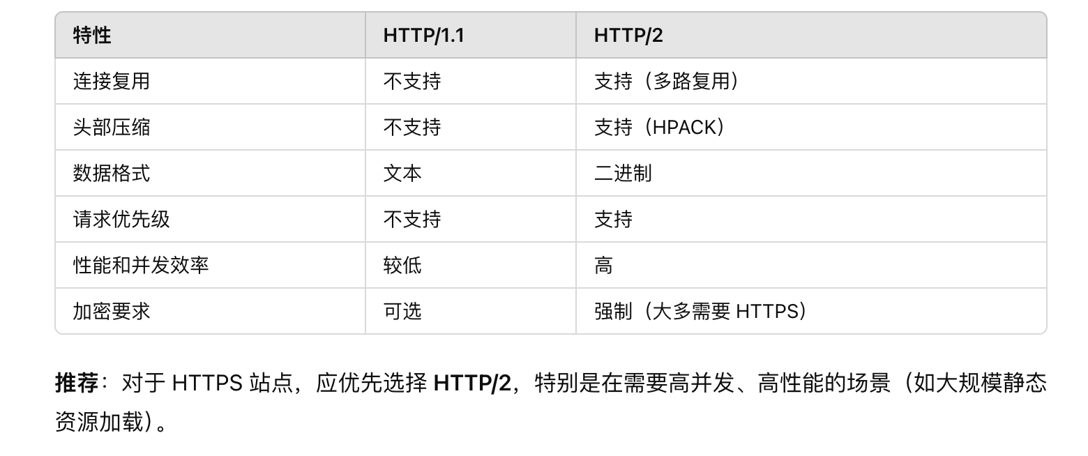 在这个例子中,ssl_ciphers 指定了服务器允许的加密套件,而 ssl_prefer_server_ciphers on; 确保即使客户端提供了其他加密套件,服务器也会优先选择这些高强度的加密算法。 ssl_ciphers 指定算法为 ECDHE-ECDSA-AES128-GCM-SHA256:ECDHE-RSA-AES128-GCM-SHA256:ECDHE-ECDSA-AES256-GCM-SHA384:ECDHE-RSA-AES256-GCM-SHA384:ECDHE-ECDSA-CHACHA20-POLY1305:ECDHE-RSA-CHACHA20-POLY1305:DHE-RSA-AES128-GCM-SHA256:DHE-RSA-AES256-GCM-SHA384:DHE-RSA-CHACHA20-POLY1305