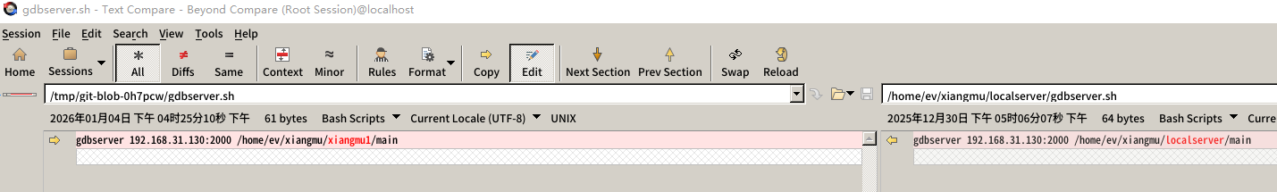 但是通过git diff命令比较,内容是在控制台输出的,不够清晰。想要通过图形化界面进行对比,可以安装Beyond Compare。首先参考《Linux控制台下svn使用图形化界面进行文件对比》安装Beyond Compare。