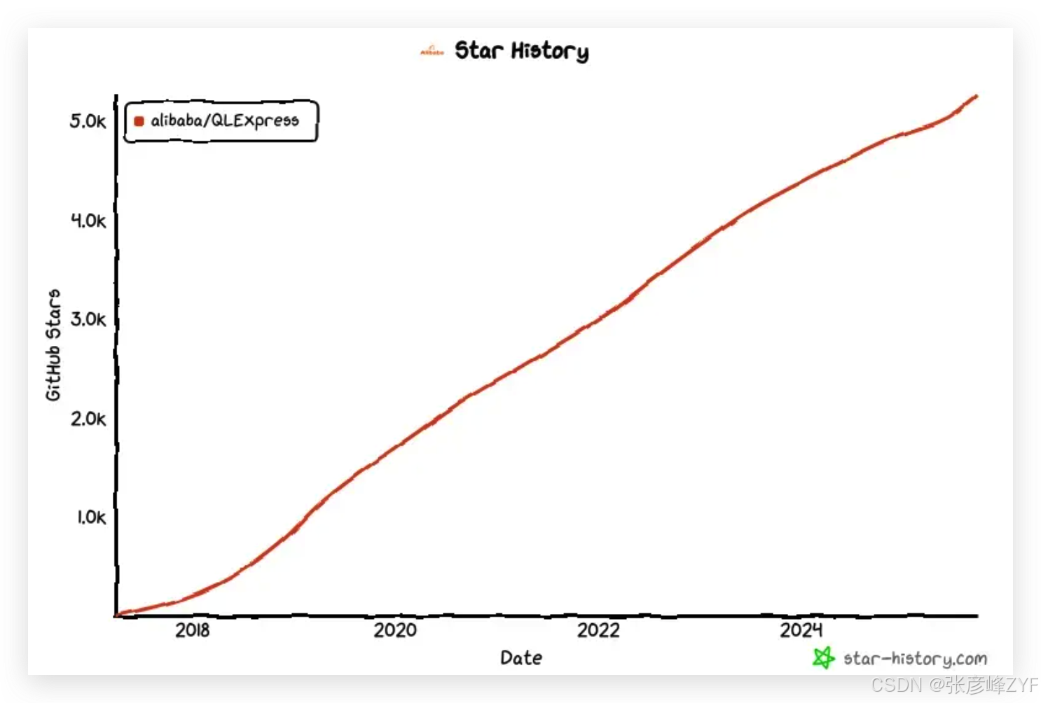 尽管 QLExpress 在 GitHub 上一度较少更新,但它的 Star 数稳步增长,并且主要增长来源于: