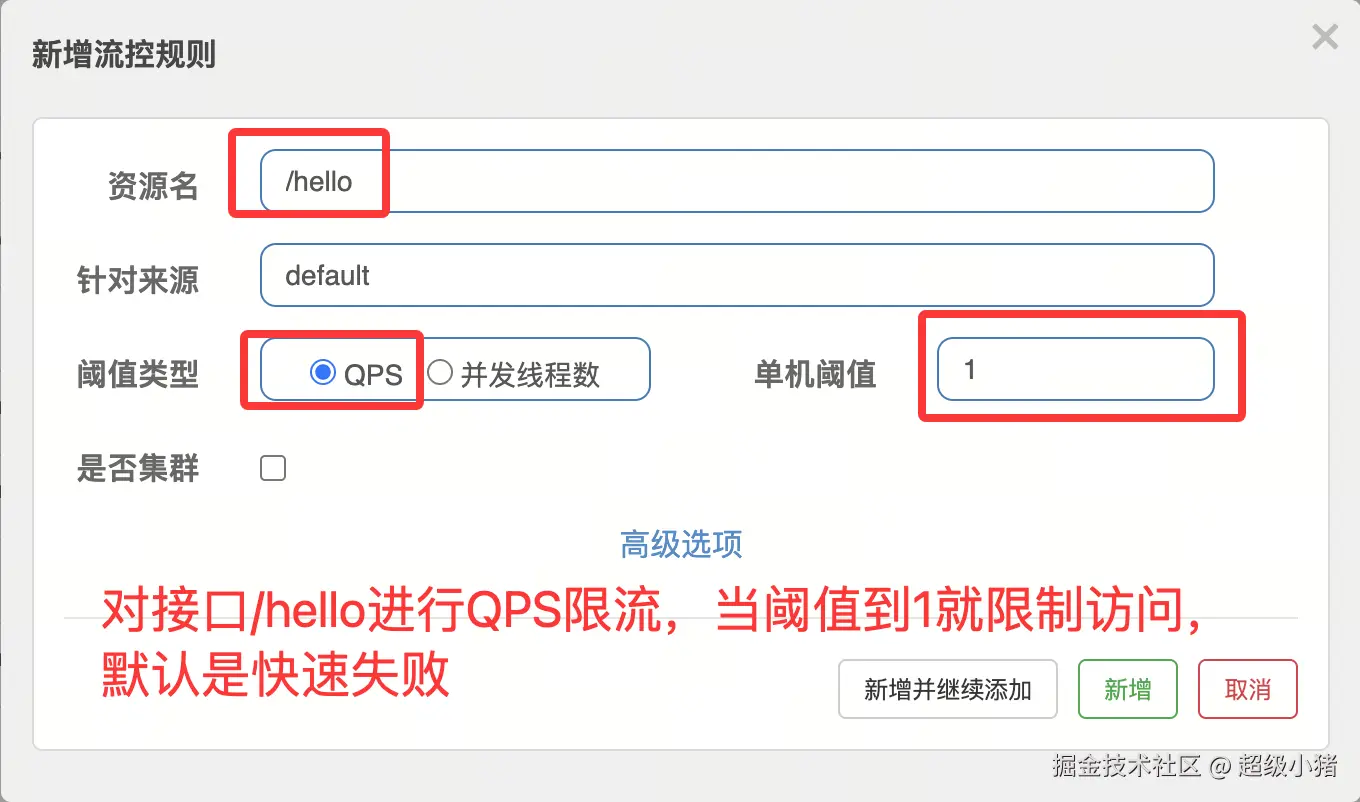 这两种流控比较简单。直接就是当达到阈值,当前接口不能访问。关联是关联的资源达到阈值就限流自己。举一个关联的例子:下单和支付的关系。下单资源:/createOrder;支付资源:/payOrder。如果要配置关联可以在/payOrder配置一个关联/createOrder的限流。当/createOrder到达阈值,限制/payOrder的接口访问。