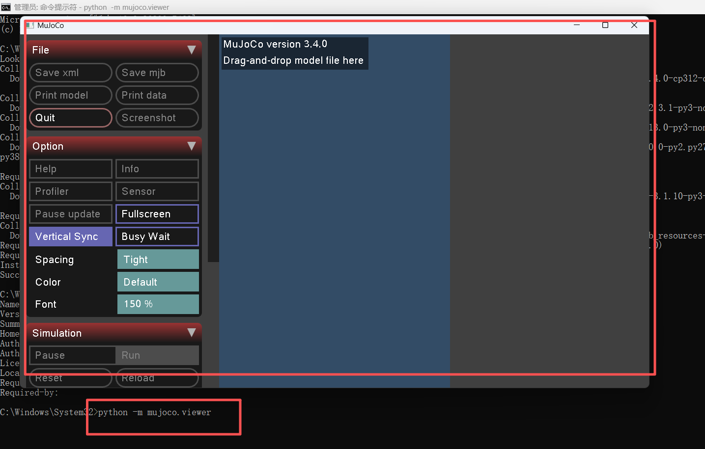 python -m mujoco.viewer // 查看是否有模拟器出现