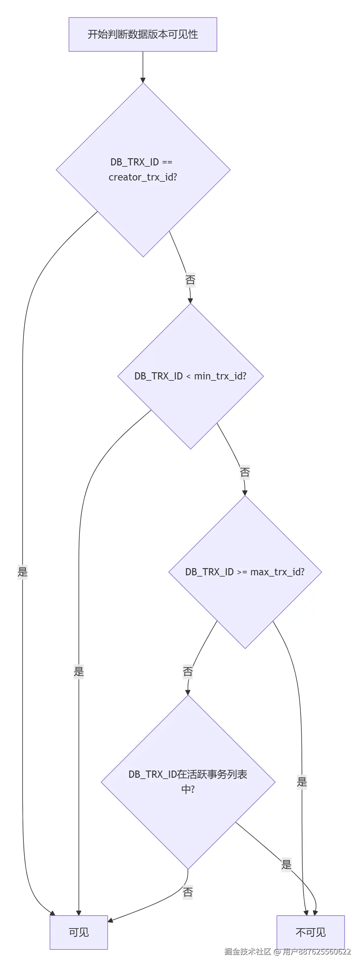 对于版本链中的每个版本,检查其事务ID(DB_TRX_ID):