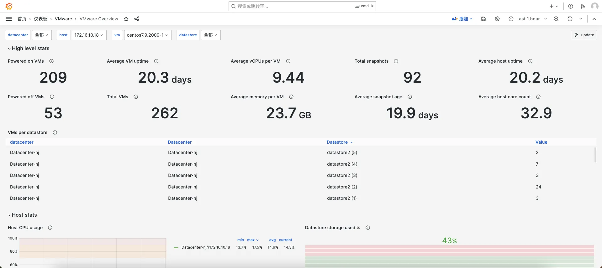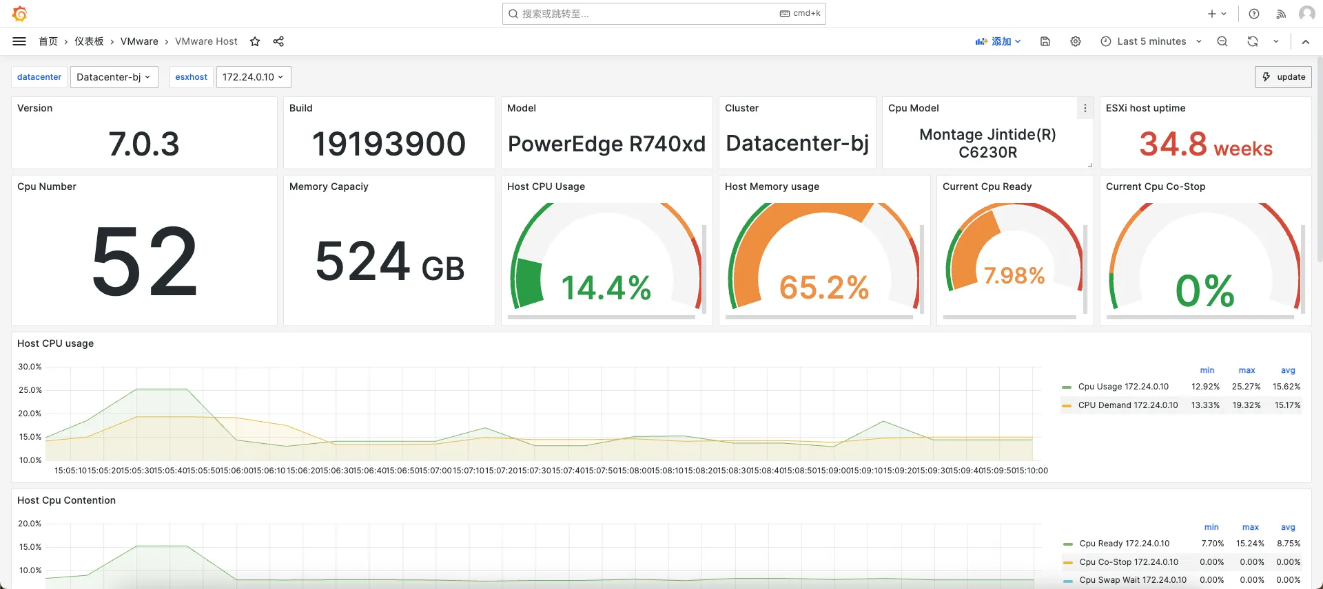 - 统一监控体系希望纳入 ESXi 与 vCenter 的指标,统一到 Prometheus,前端由 Grafana 呈现。