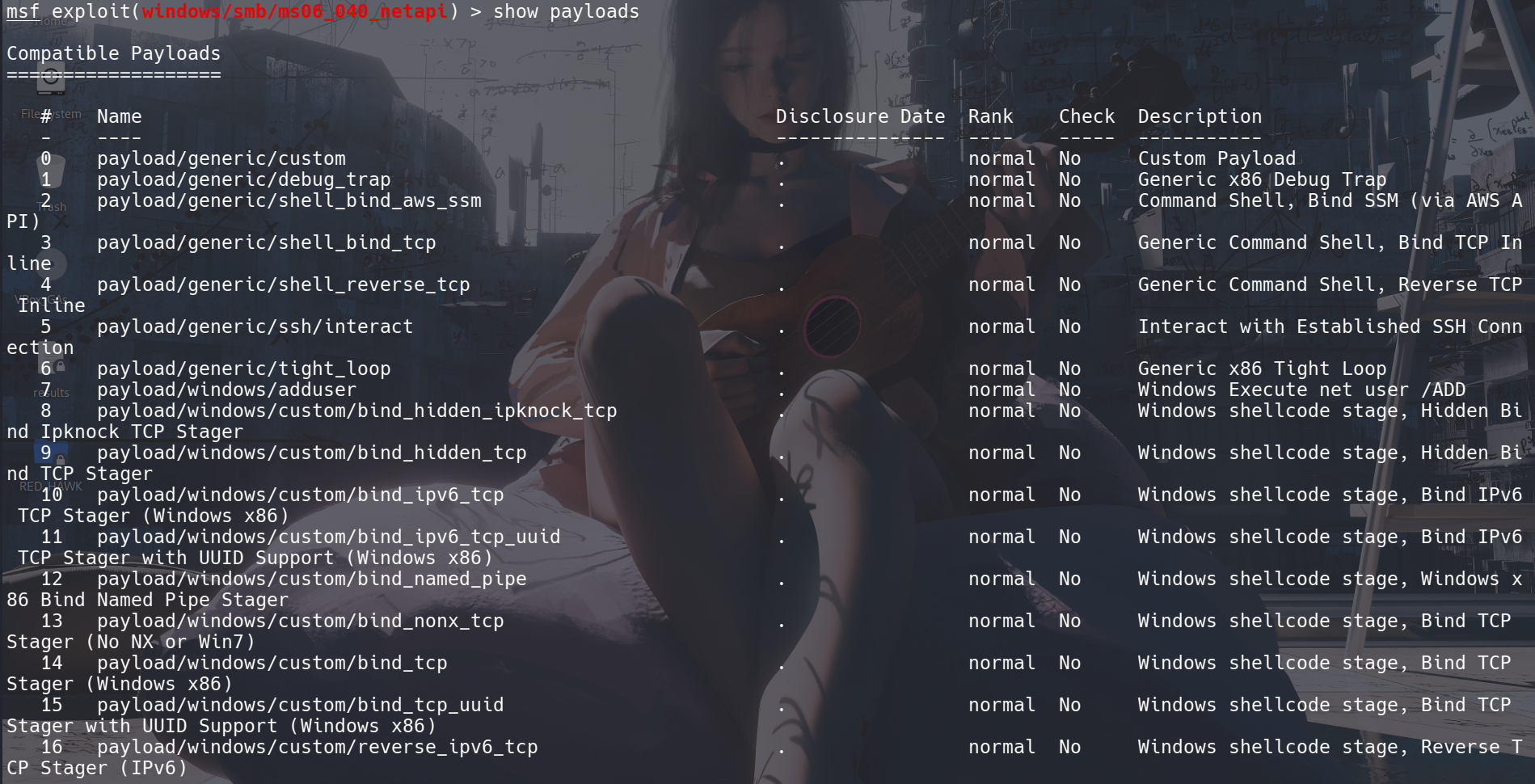 列出当前模块可以使用的所有有效载荷