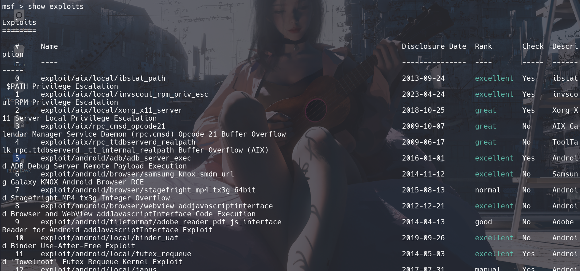 显示当前可用的所有漏洞利用模块