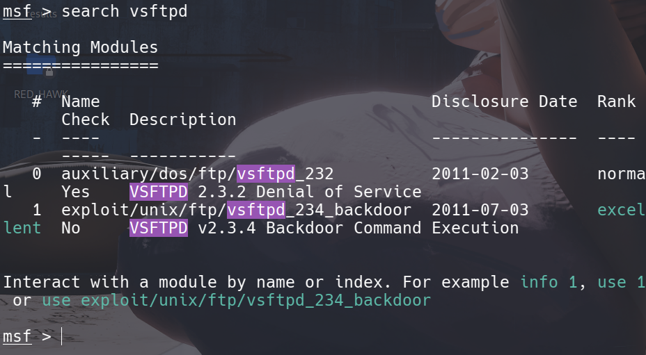 msf> search vsftpd