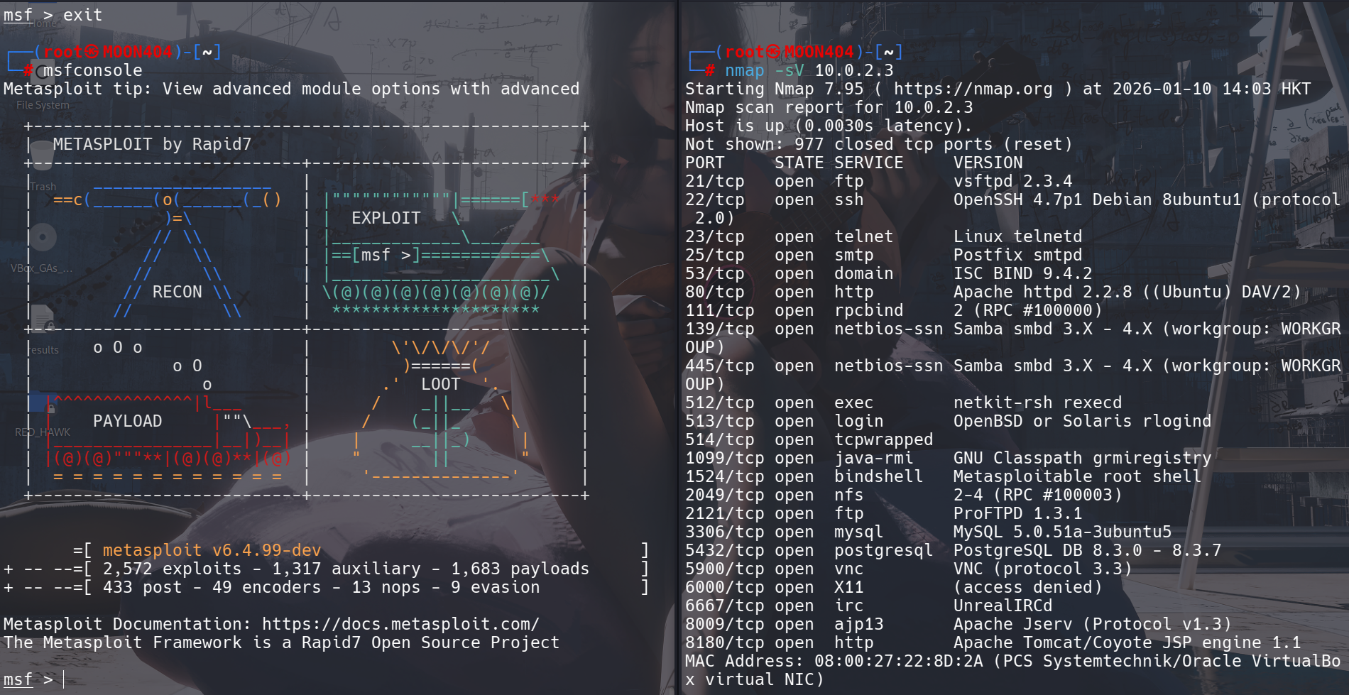 启动 MSF 控制台并扫描目标靶机