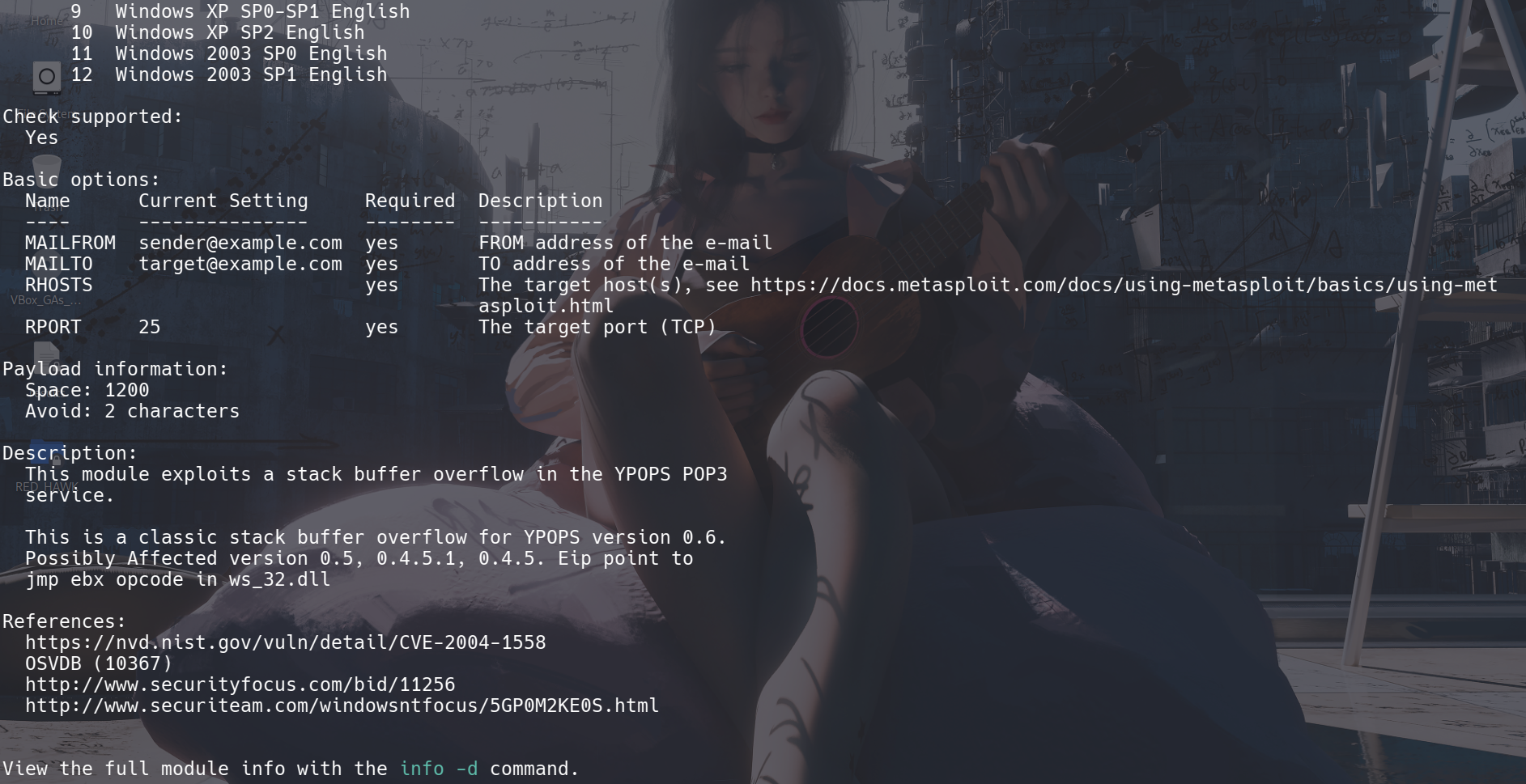 显示当前漏洞利用模块支持的目标系统列表
