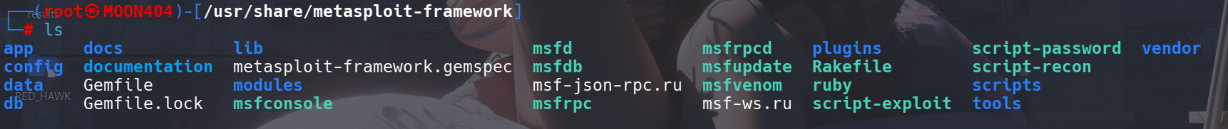 Modules: 这是存放Metasploit所有模块的文件夹。这些模块是Ruby脚本,它们与Metasploit本身进行交互,以执行特定的任务。模块的种类繁多,例如用于利用漏洞并获取 slhell的"exploit"模块、用于执行非 shell获取活动的"auxiliar"模块、用于Metasploit各种载荷(这些也属于莫块)的 "payloads"模块,以及用于后渗透模块的 "post"模块。