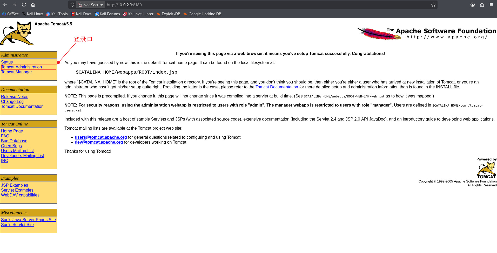访问该端口地址 10.0.2.3:8180