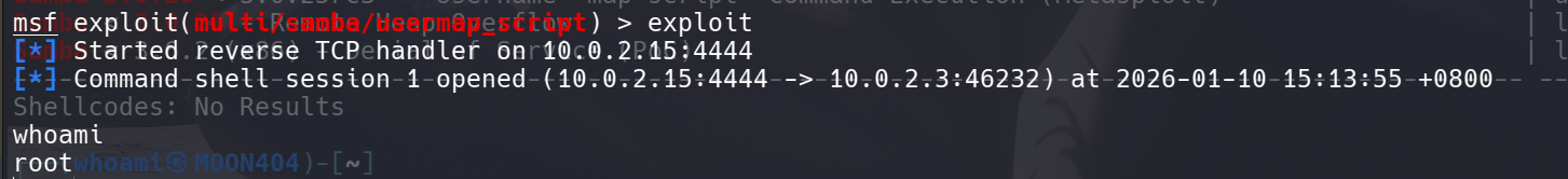 此模块利用了命令执行漏洞。该漏洞存在于Samba版本v3.0.20至v3.0.25rc3中,可通过使用非默认配置选项(如用户名映射或配置选项)来利用此漏洞。通过指定包含shell元字符的用户名攻击者可以执行任意命令