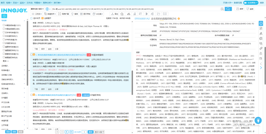 Innojoy收录全球105个国家/地区专利数据,超过1.8亿件全球专利信息,60个国家/地区的法律状态, 45个国家/地区的代码化全文,38个国家/地区的小语种英文翻译;支持提供美国增值数据,可自动计算续展天数,明确公知技术,INPADOC同族专利数据,DOCDB引证数据;具备英国、美国、加拿大、瑞士、德国、欧洲、日本7个国家/地区的期限延长PTE数据,以及美国期限调整PTA数据。