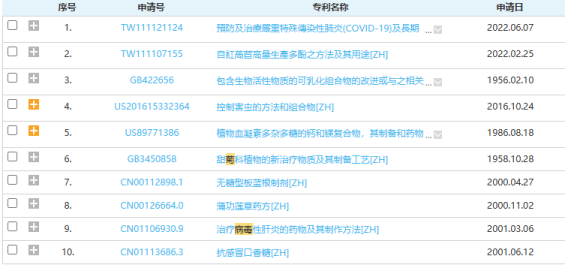 菊属植物用于抗病毒方面的专利,方法一:采用关键词检索。查找菊属植物用于抗病毒方面的专利。