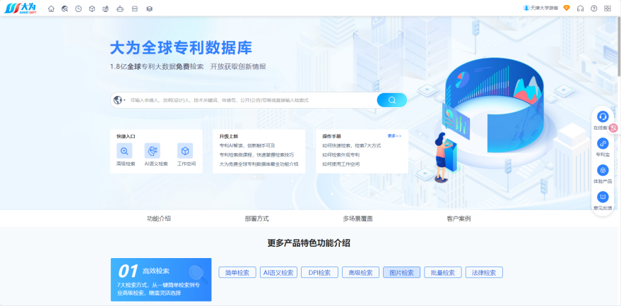 在大为页面,输入专利号进行检索。