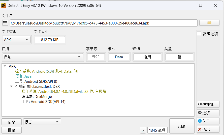 拖入DIE简单看一下,结合.apk的程序,推测出应该是个安卓逆向题