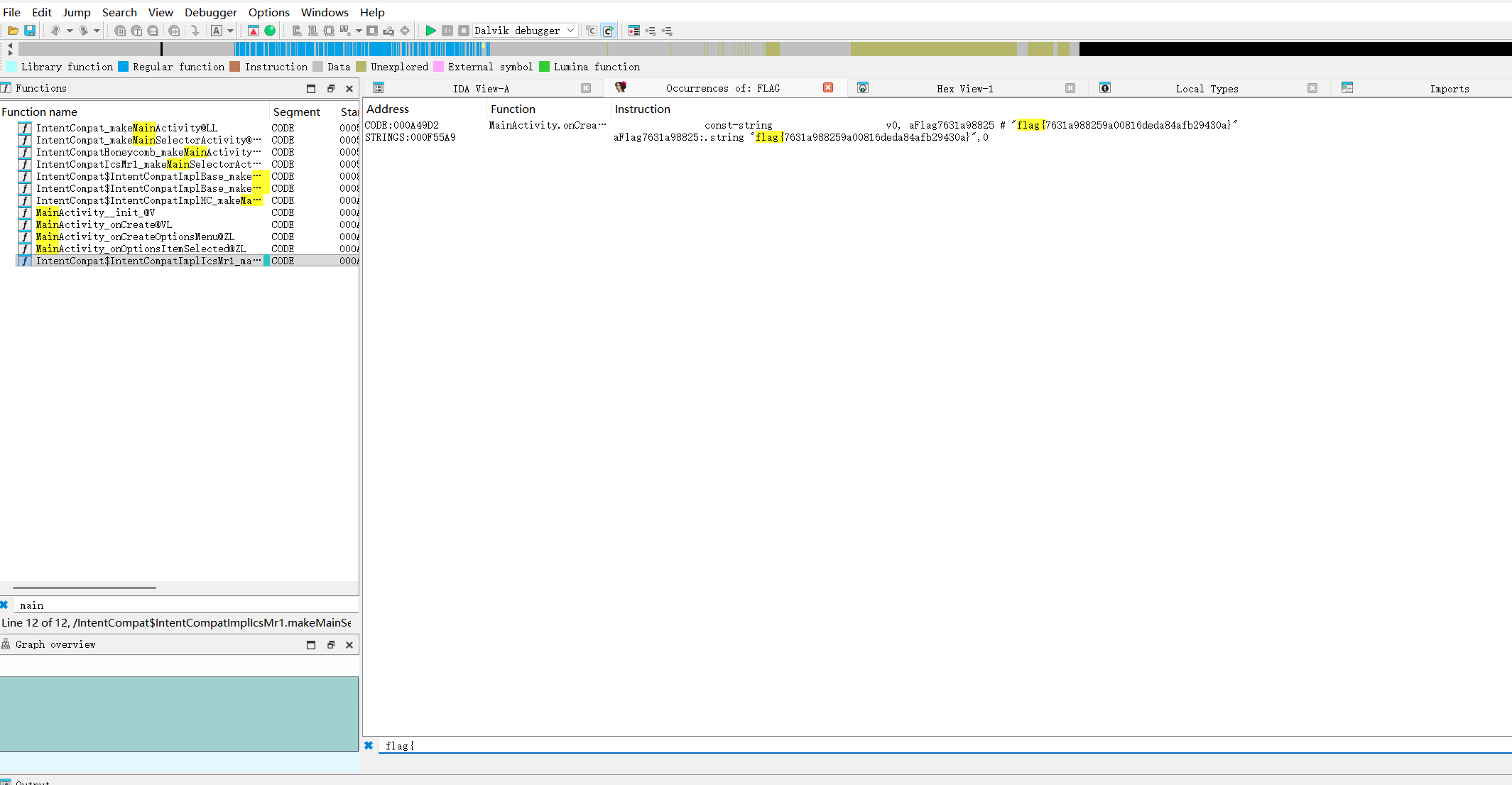 本题属于入门级 Android 逆向题,未涉及加解密、壳保护(如 360 加固、腾讯乐固)等复杂场景,因此可以通过「直接查找主函数」或「字符串检索」快速解题。对于复杂题目,通常需要结合 jadx-gui 分析代码逻辑、IDA Pro 动态调试、脱壳工具先脱壳等步骤才能提取 flag。