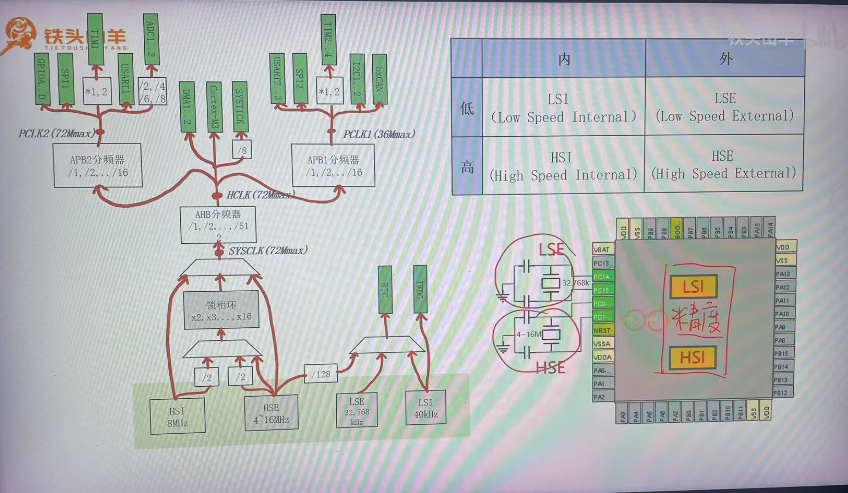 • 树根就是时钟的来源,内部时钟有两个LSI,HSI但是内部的时钟精度不高。