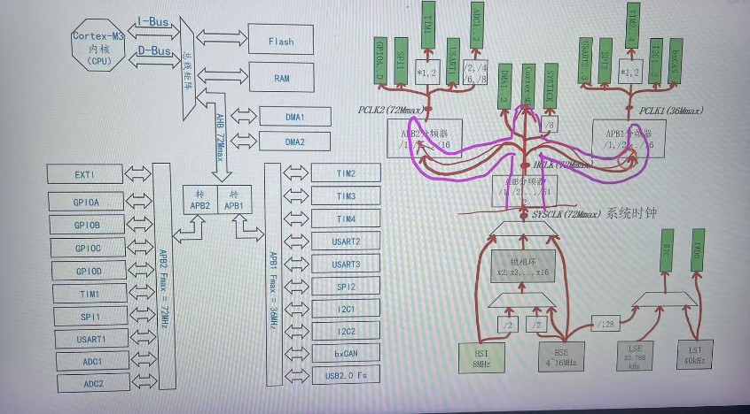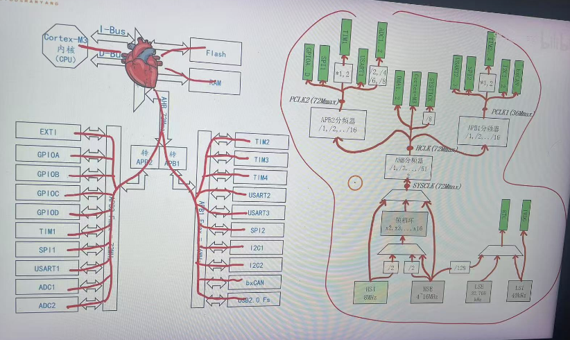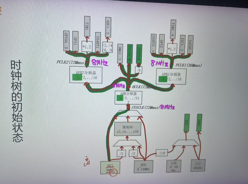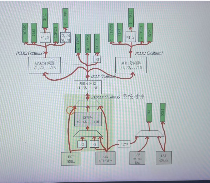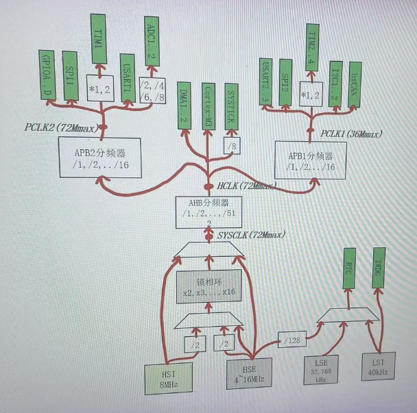 • 可以把时钟树理解为血液系统,为单片机的每个外设输送时钟信号(血液)。