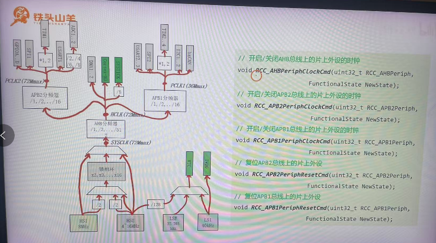 • 时钟是指 为芯片内部的各个模块(片上外设)提供 时间基准 的信号源,是芯片正常工作的基础。我们在写程序之前,首先都需要给要使用的那个模块(外设)打开时钟。