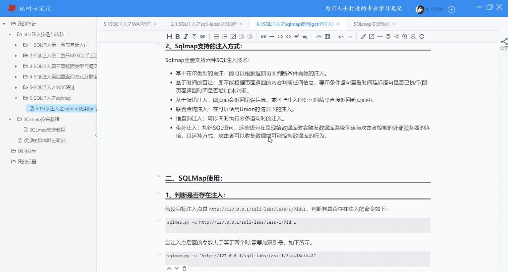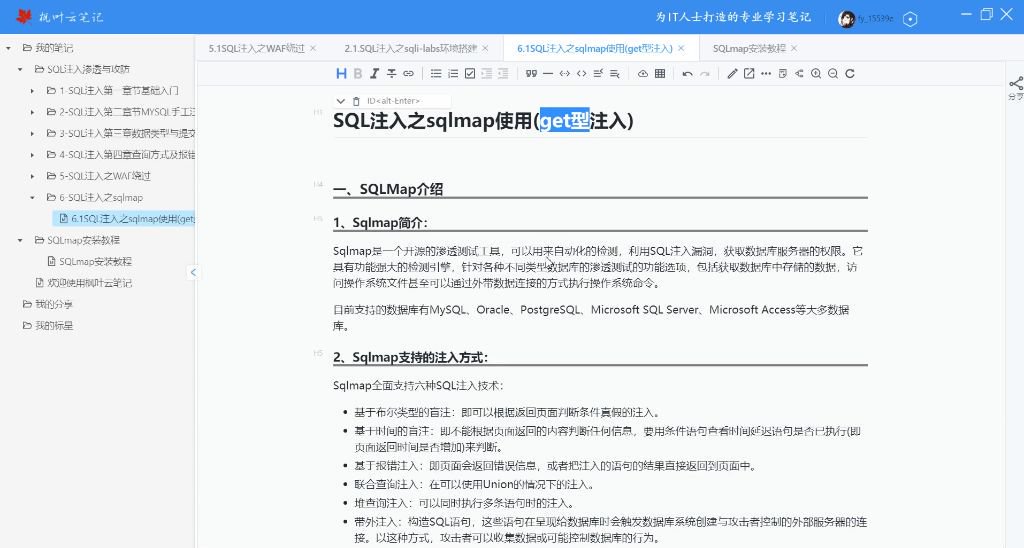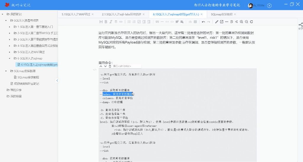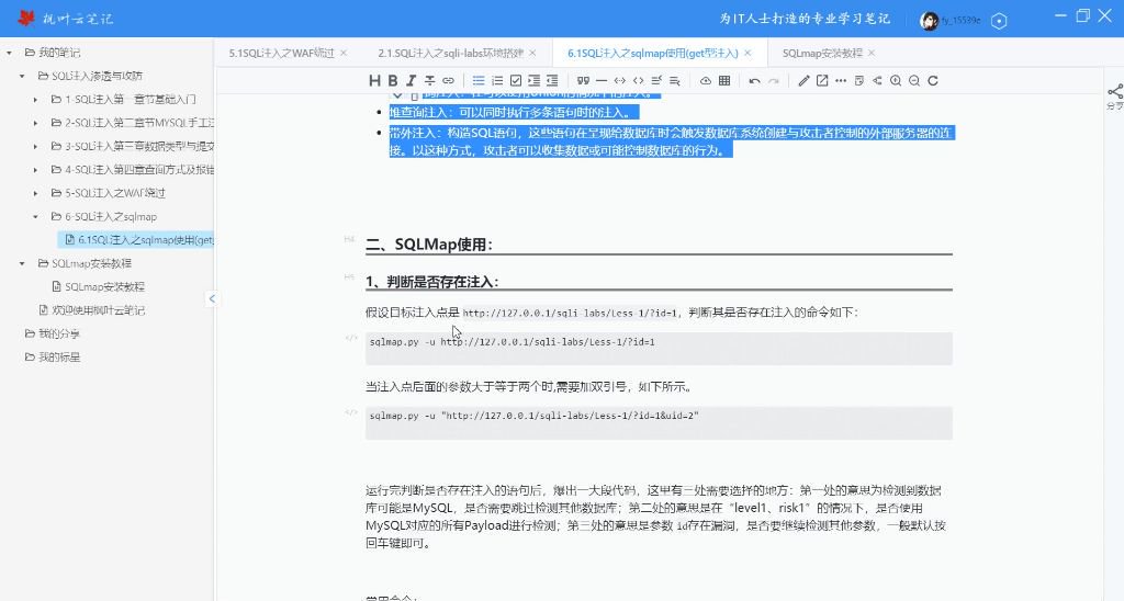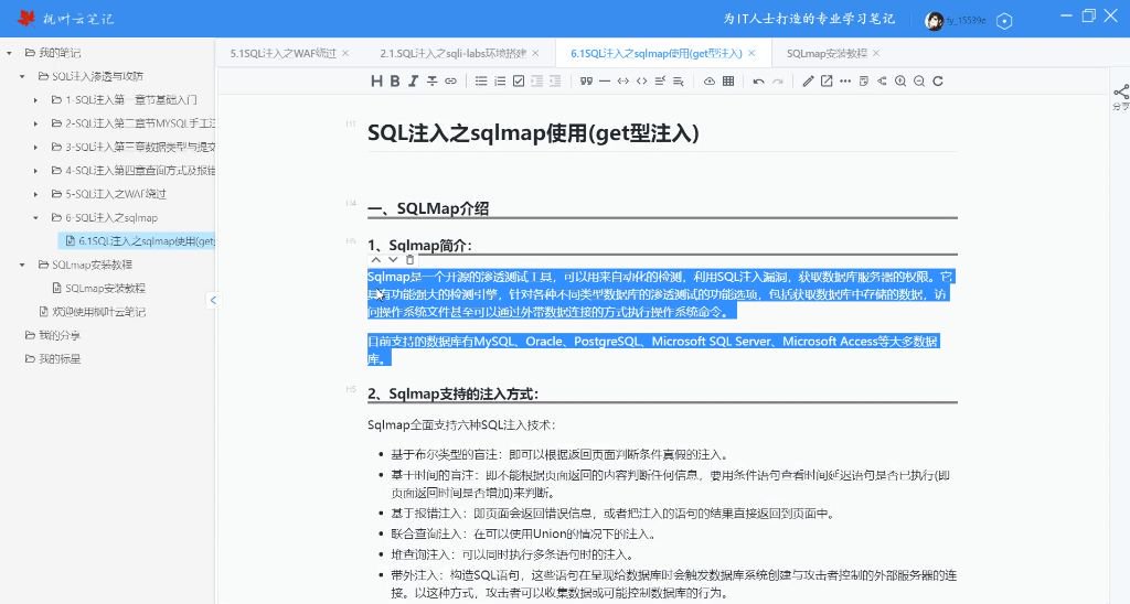 | 工具使用场景 | 用于渗透测试中提高SQL注入效率,后续课程主要依赖此工具 | 实际应用中需结合目标数据库类型选择注入方式 | ⭐⭐⭐ |