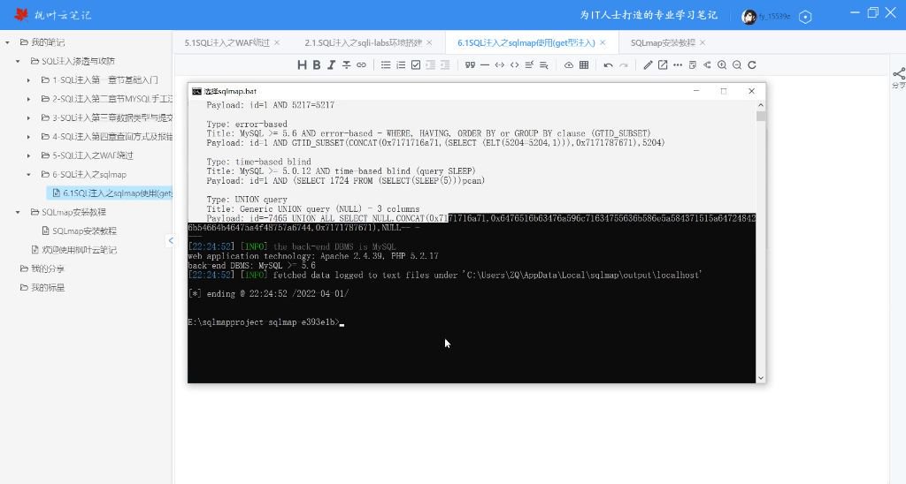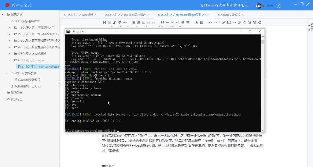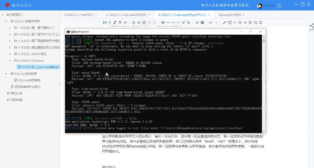 6.2 SQL注入之sqlmap使用(get型注入)_笔记