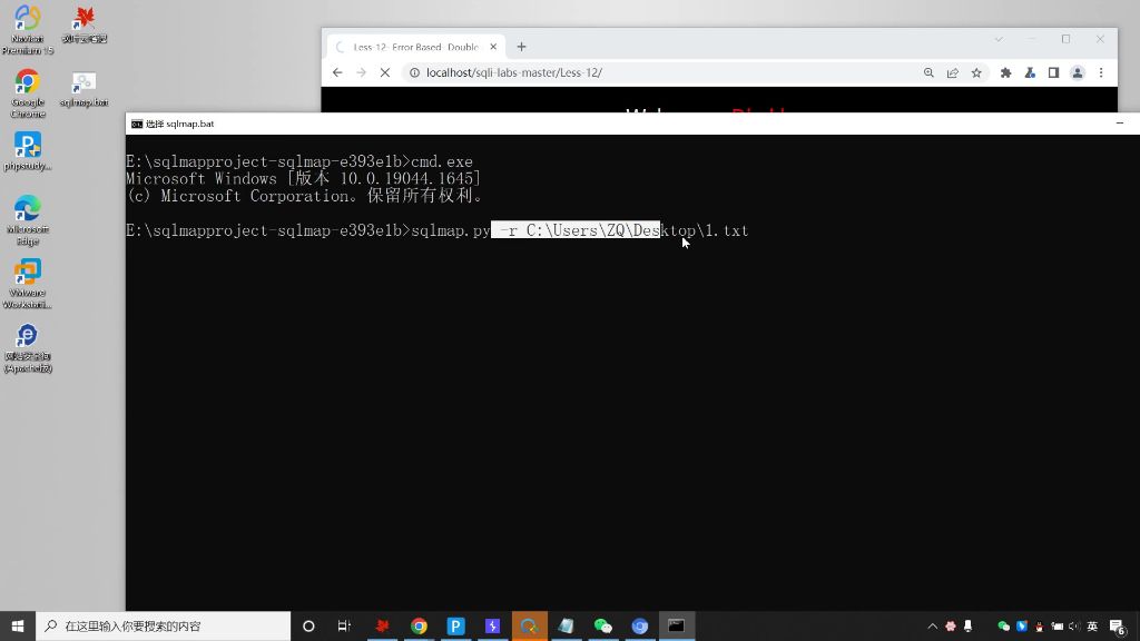 - 在解压目录创建批处理文件(cmd.exe保存为sqlmap.bat)