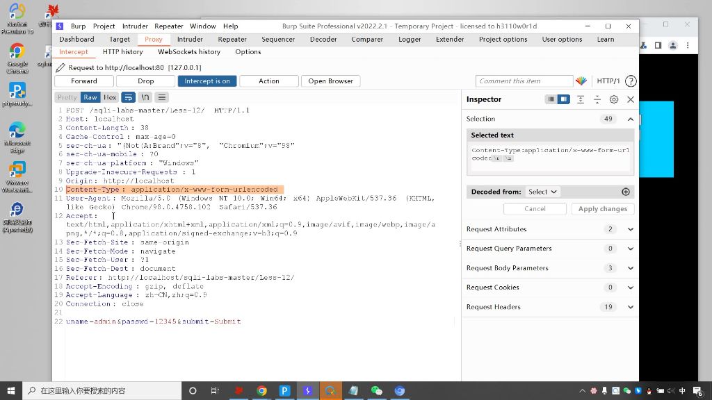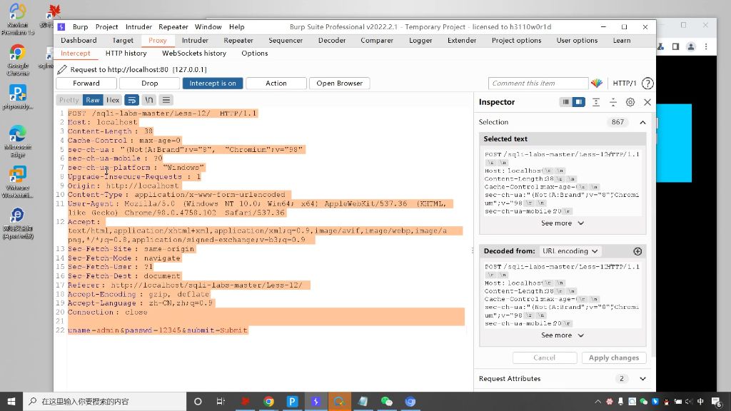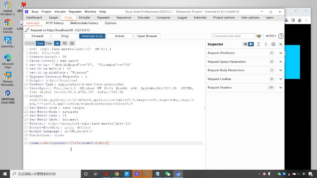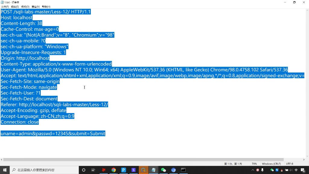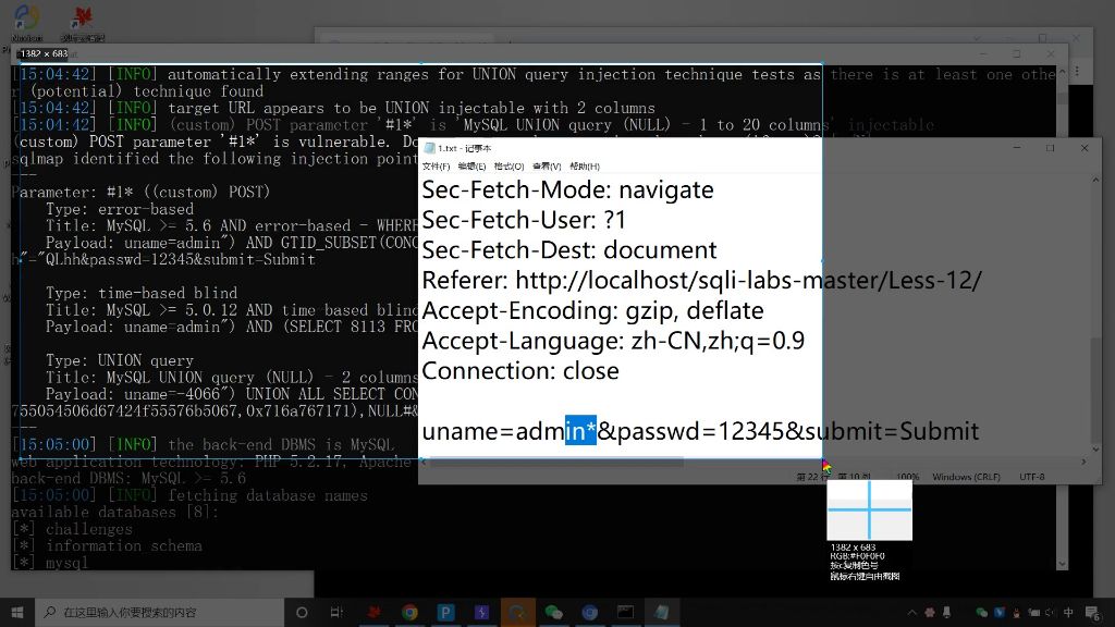 - 例如:uname=admin*&passwd=12345中的*表示只测试uname参数