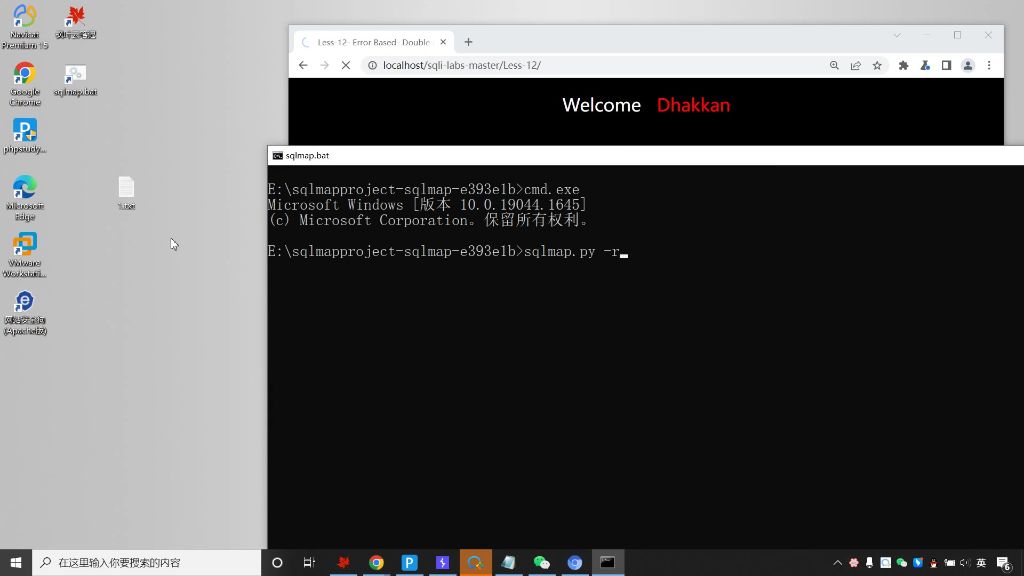 - 在解压目录运行cmd,执行"sqlmap.py"命令