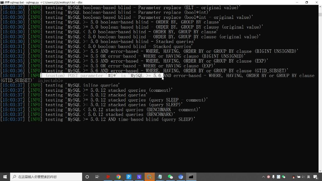 - 典型输出:会显示每个参数的注入类型(布尔/报错/时间/联合)