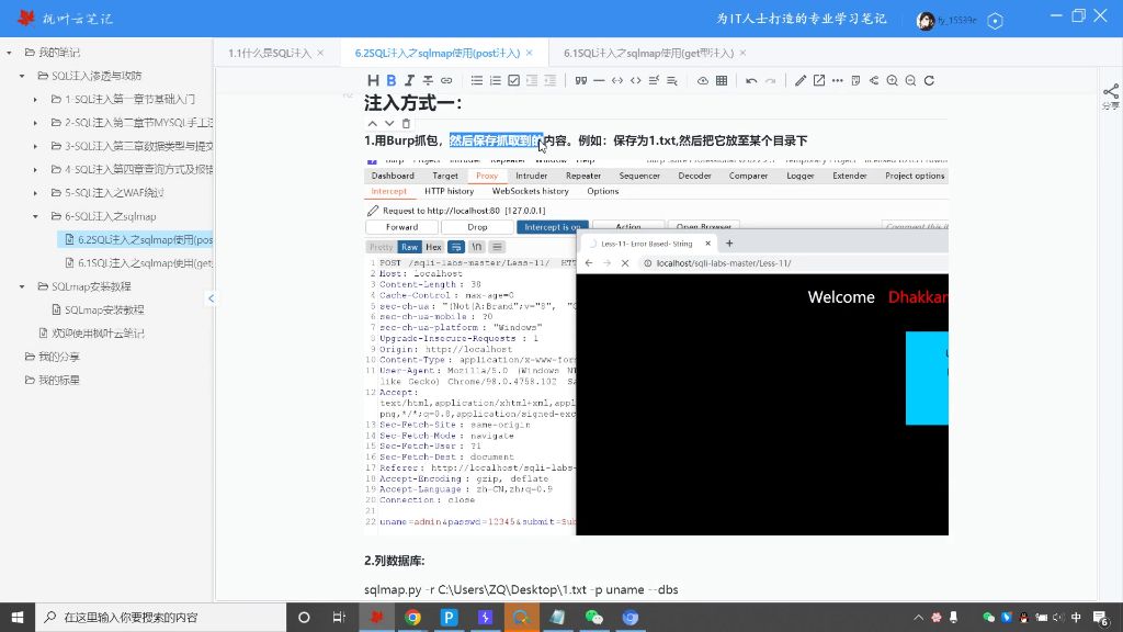 | 抓包工具使用 | 使用Burp Suite捕获POST请求数据包,保存为文本文件 | 数据包头部、Cookie、表单字段的注入点检测优先级 | ⭐⭐⭐ |