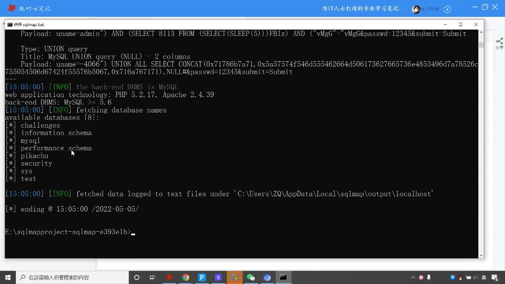 - 扫描结果自动保存在C:\Users[用户名]\AppData\Local\sqlmap\output\