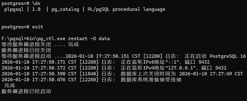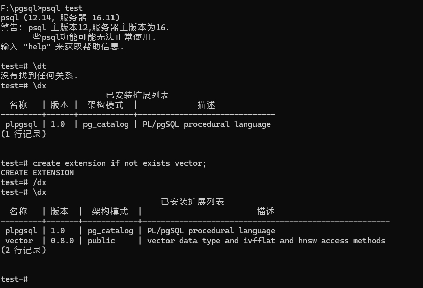 重启pgsql。不报错。就表示pg_vector插件安装成功。