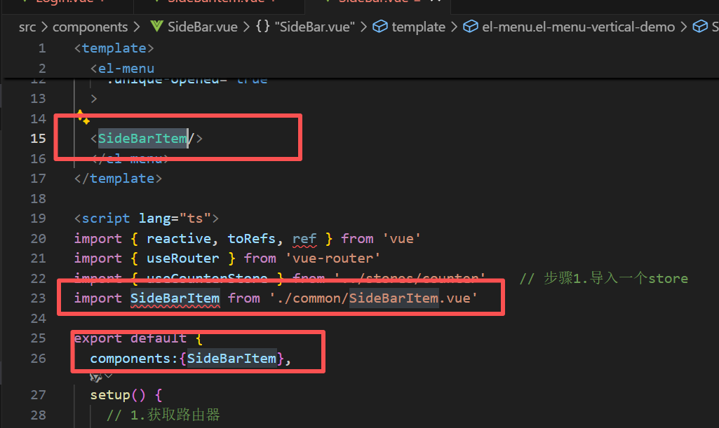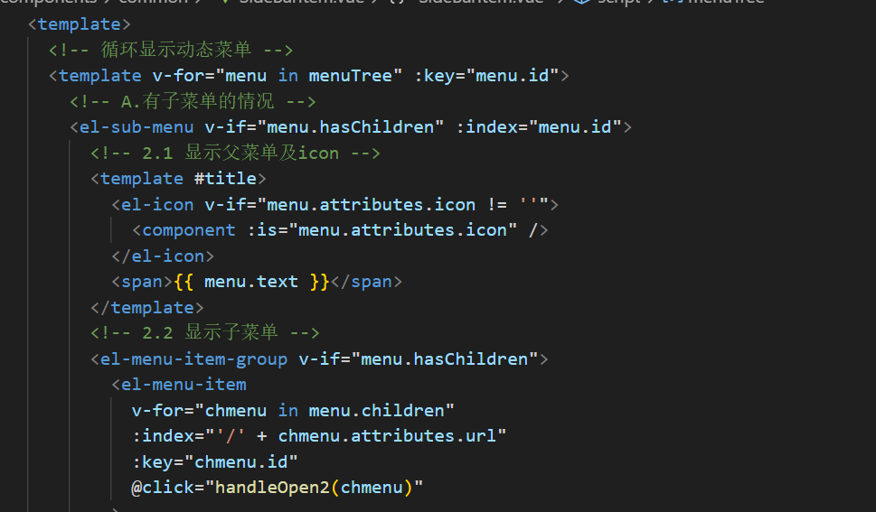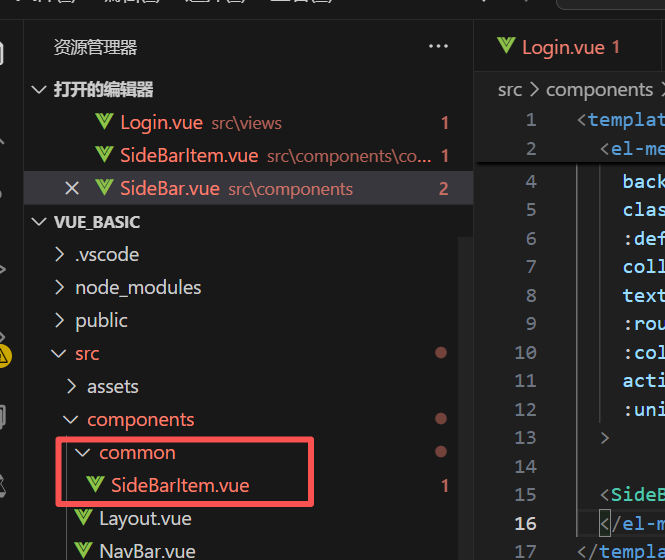 接下来我们就要在SideBarItem里面进行循环遍历和使用接口返回的菜单了