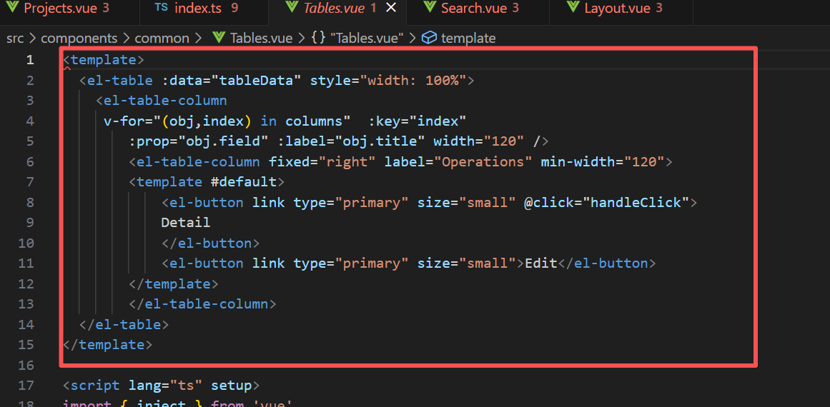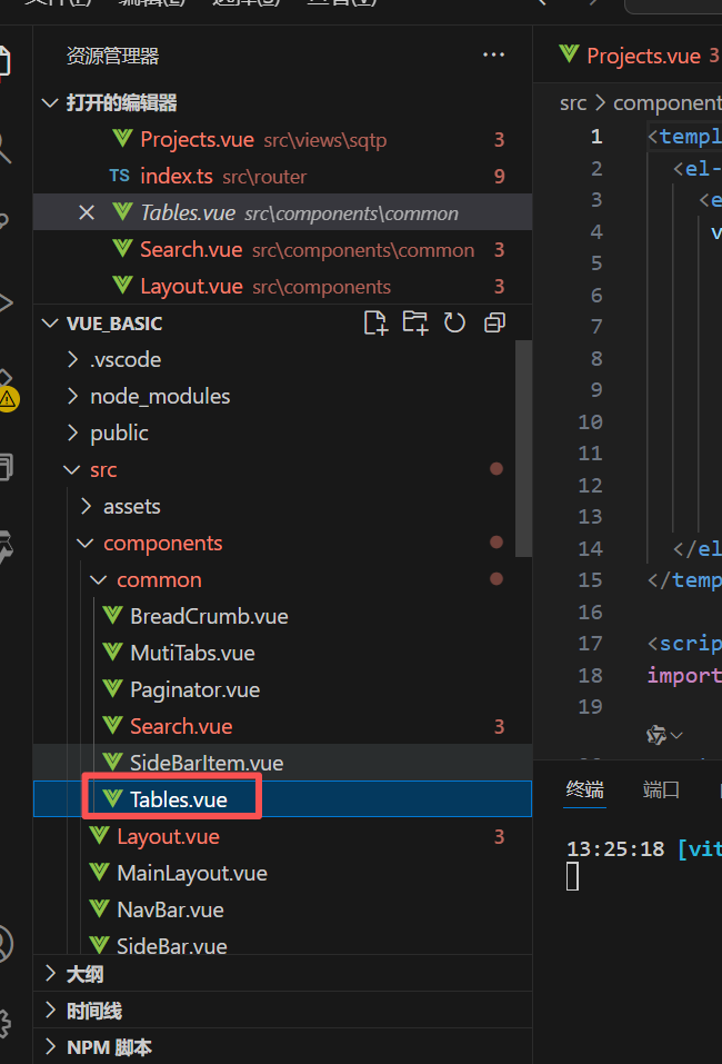 在components/common/下,创建Tables.vue组件