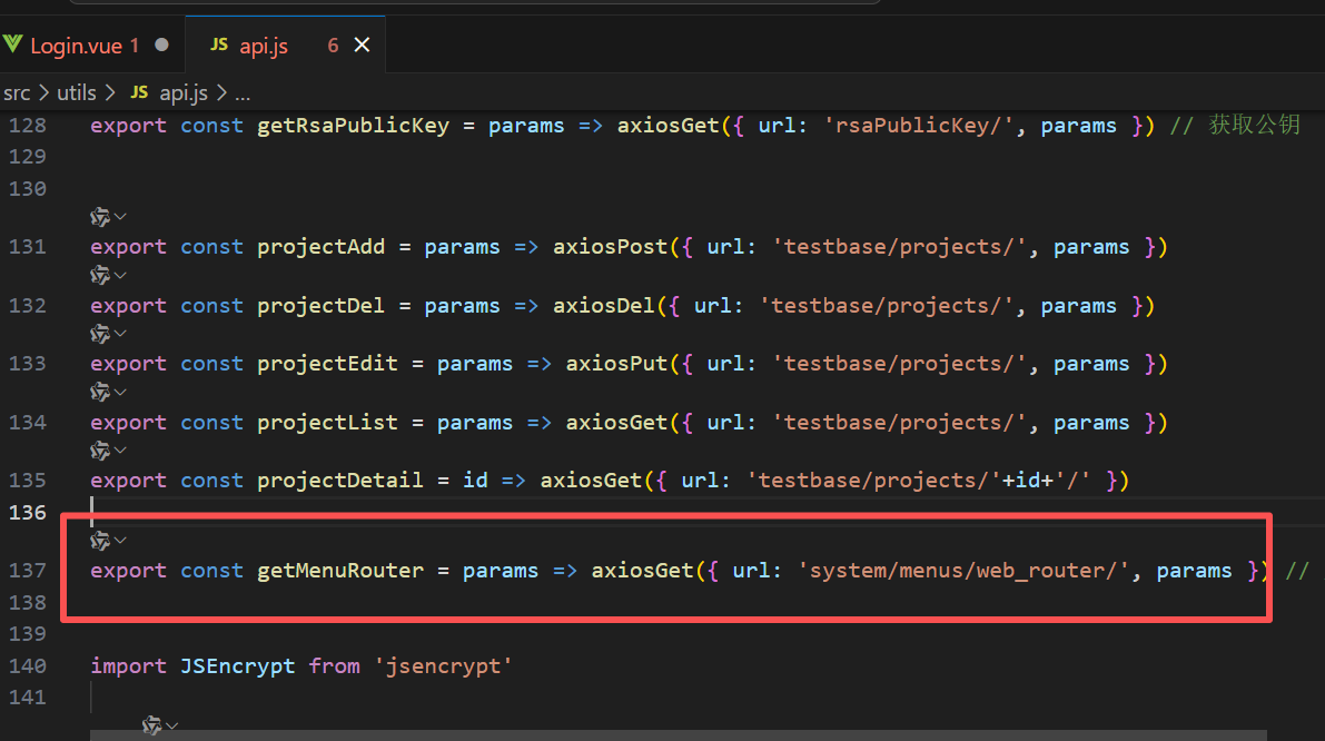 首先我们在api.js文件中添加获取菜单权限的接口