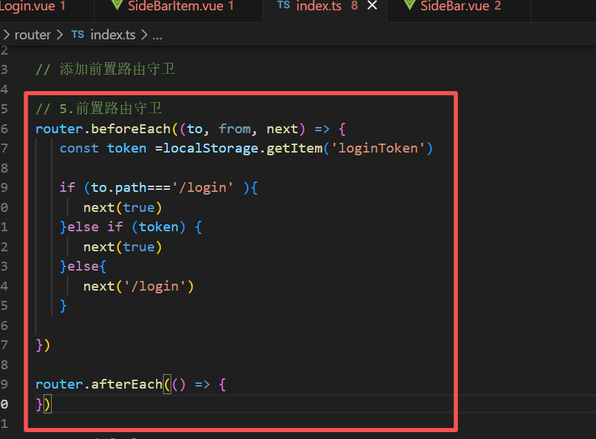 这个路由守卫的意思就是,我们在开发过程中,很多页面我们都是直接通过页面路径链接直接跳转到对应页面进行开发的,但是,在实际的应用页面,我们在通过路径访问的时候,我们要做判断,是否能够访问该页面,就比如说,如果不存在登录态,那么,我们就让它返回到登录页面