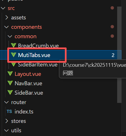 同样的道理,我们在common文件中创建一个vue文件