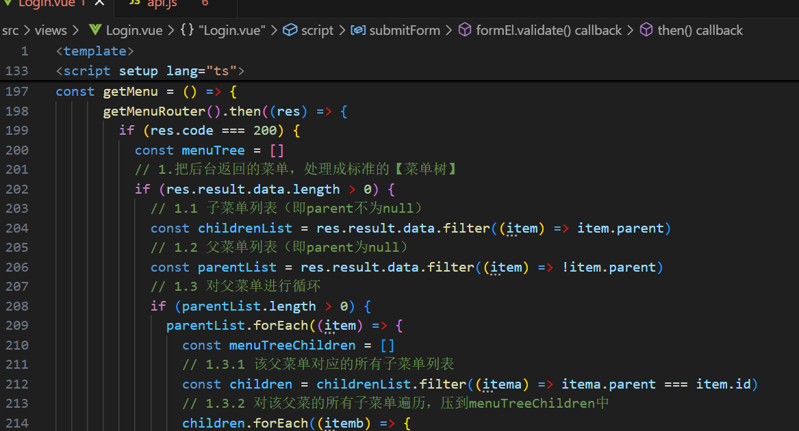 然后再将菜单数据转化成树型结构