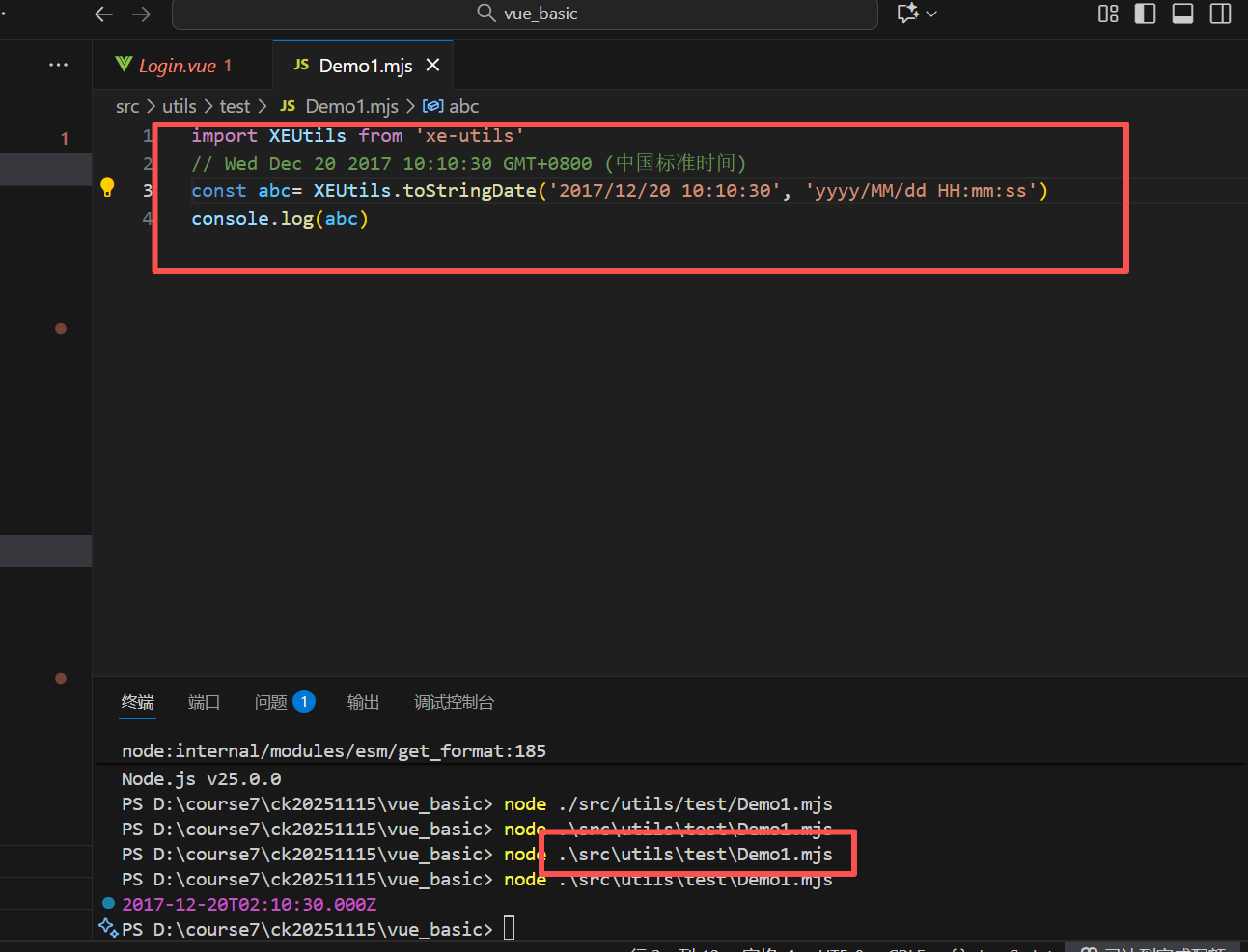 然后,我们可以直接在此目录下,创建一个Demo1.mjs文件,导入然后进行简单运行