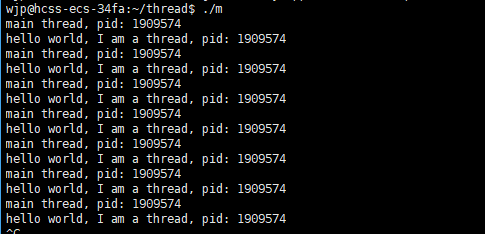代码1示例:创建一个线程去一直打印进程的pid,主线程也一直打印进程pid。