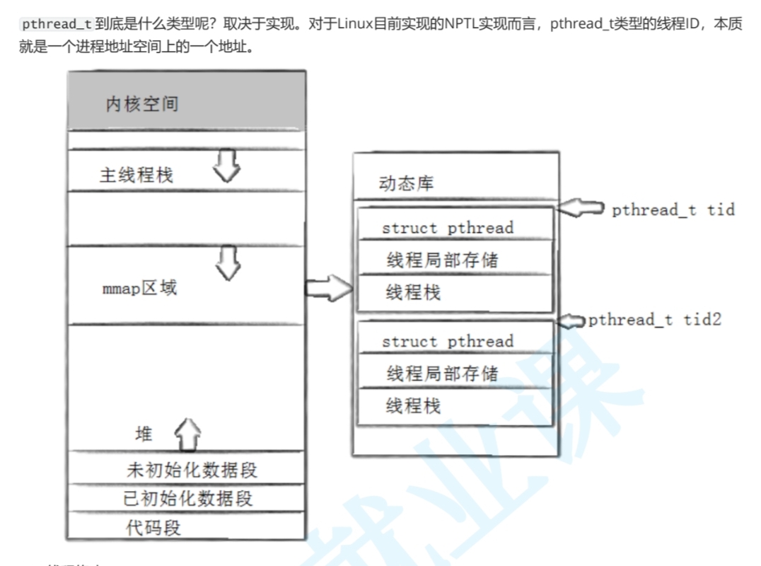 线程库是一个动态库,是一定会被加载到内存里面的,tid就指向存储这些数据属性的起始地址,所以我们在pthread_create创建线程时,就会返回tid这个地址给用户,来方便用户获取数据。
