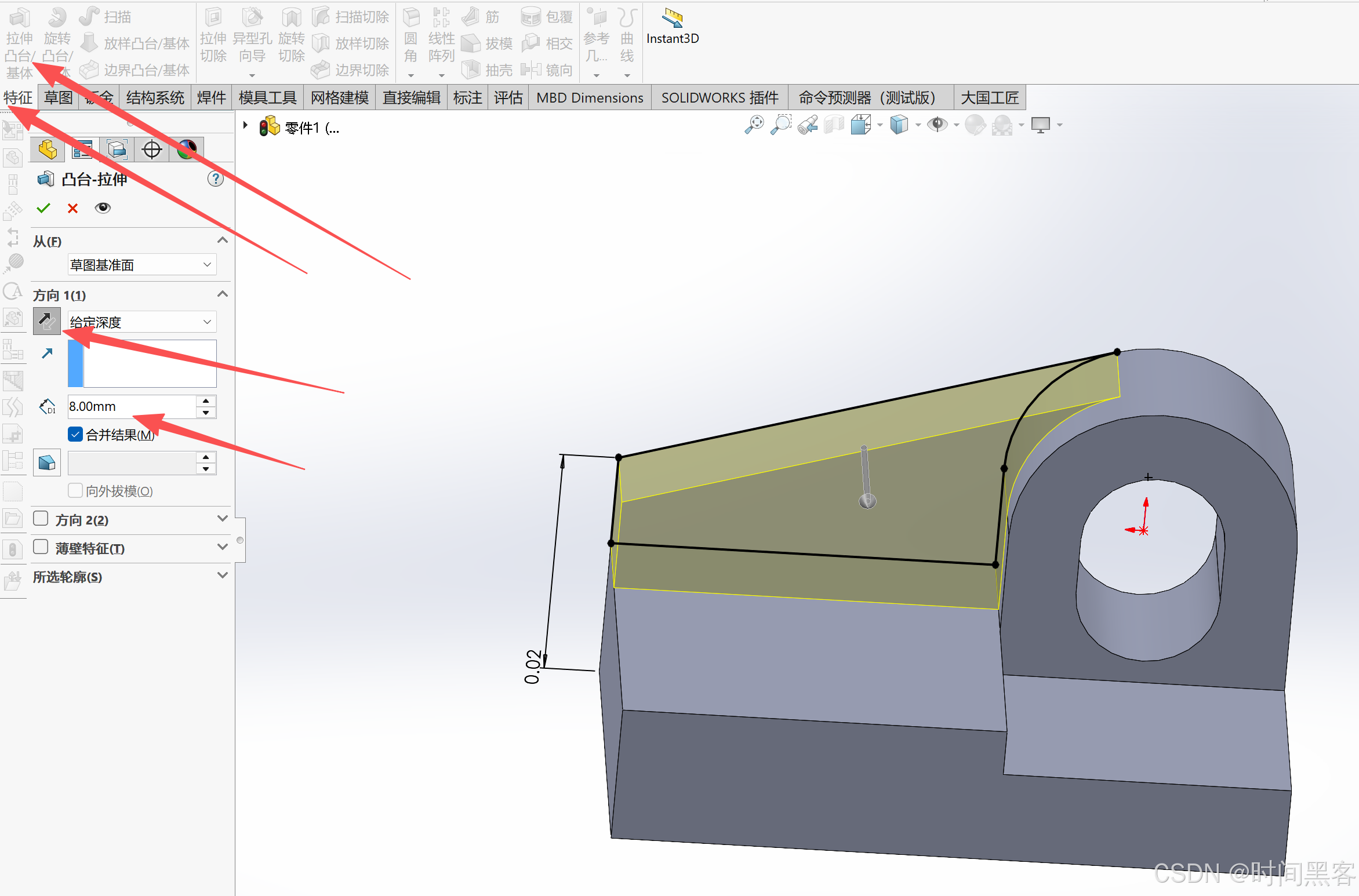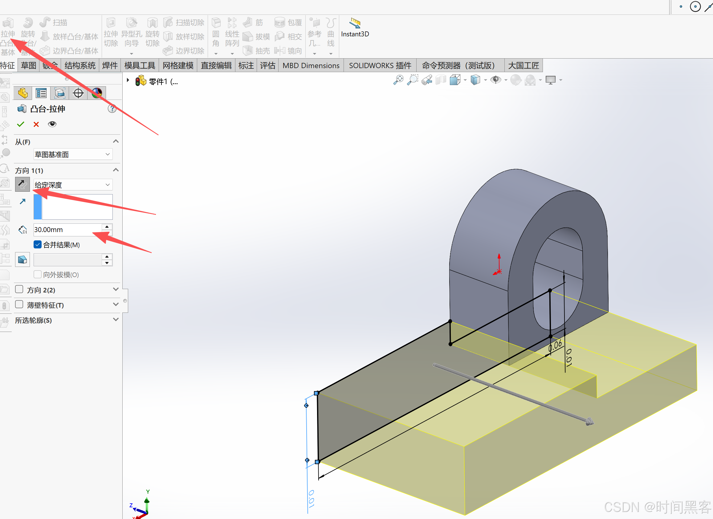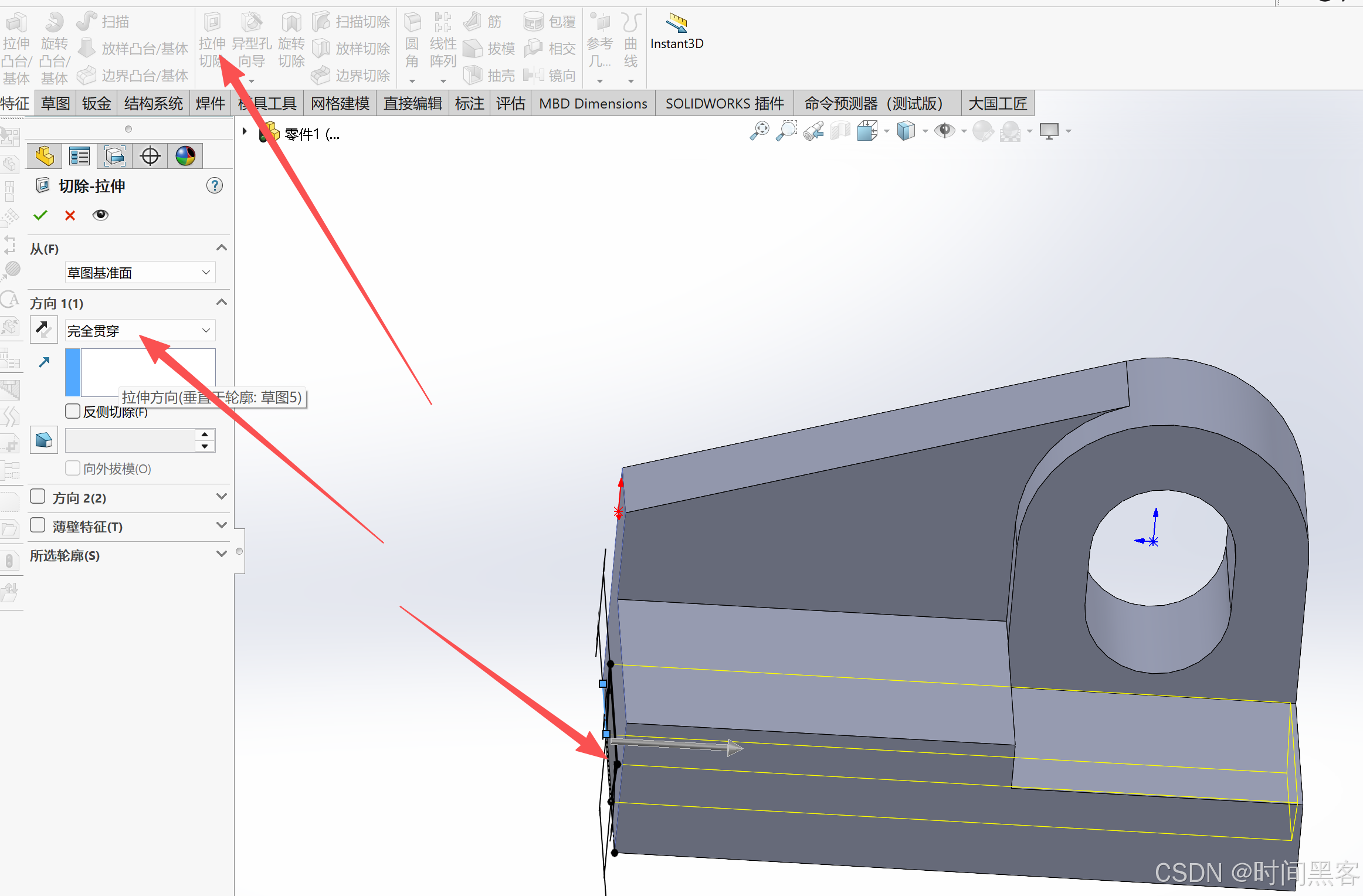然后拉伸切除,贯穿