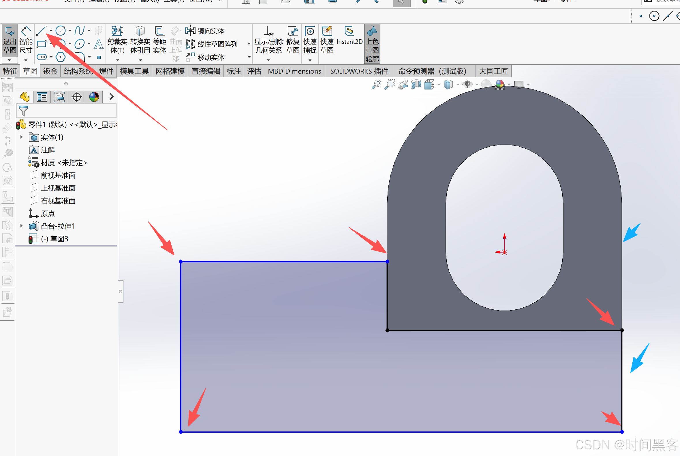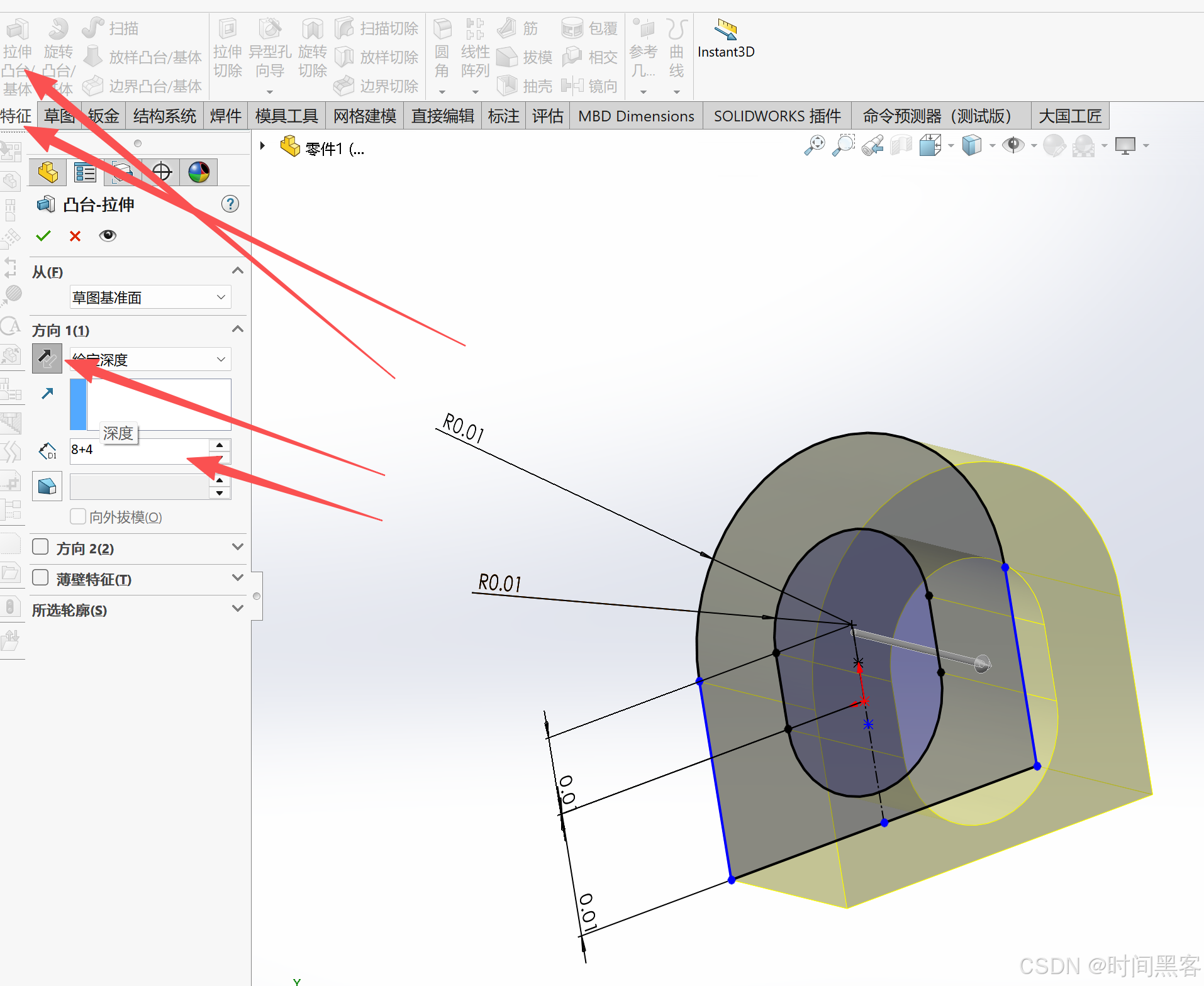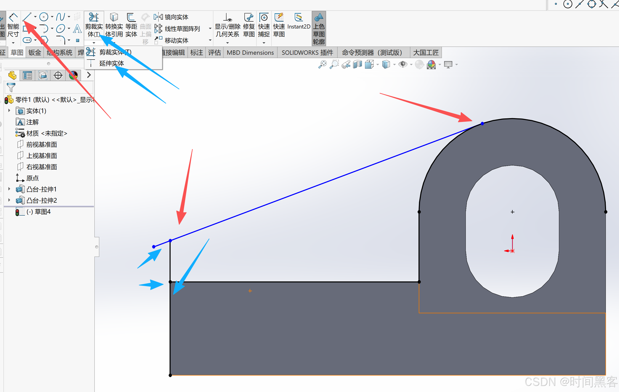 然后拉伸切除,贯穿