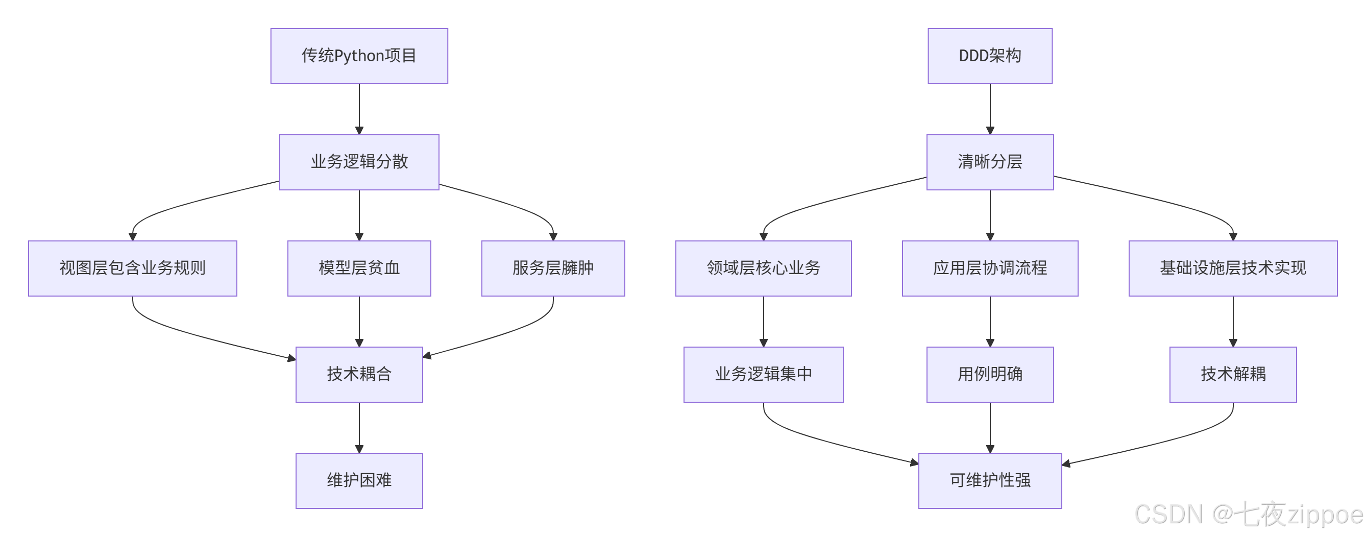 下面通过架构演进图展示DDD如何解决传统Python项目的痛点: