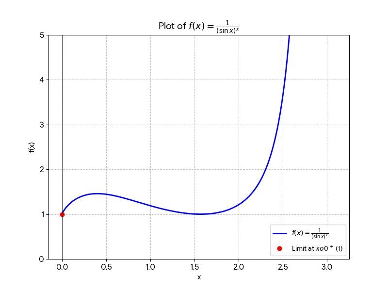 \lim_{x \rightarrow 0^+} \frac{1}{(\sin x)^x} = 1