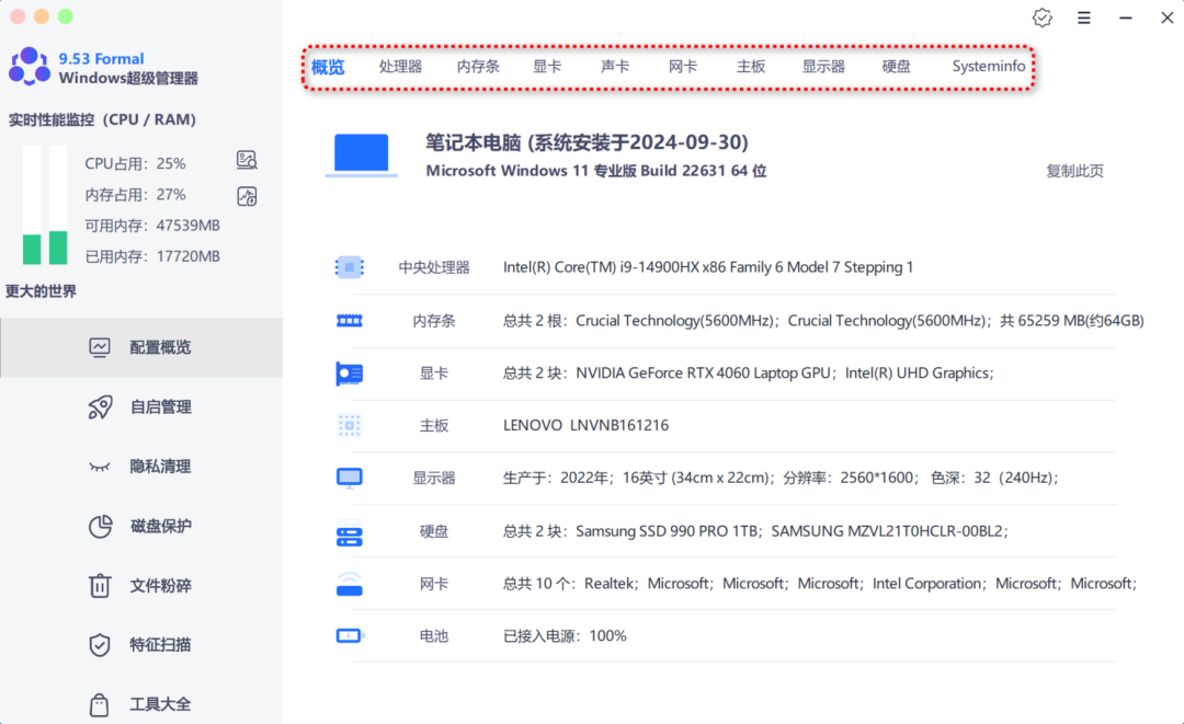 今天给大伙儿安利个全能的系统管理工具,它叫 Windows超级管理器。功能那叫一个全乎,系统检测、文件清理、隐私保护、磁盘管理、文件粉碎这些实用活儿它都能干,堪称系统管家!