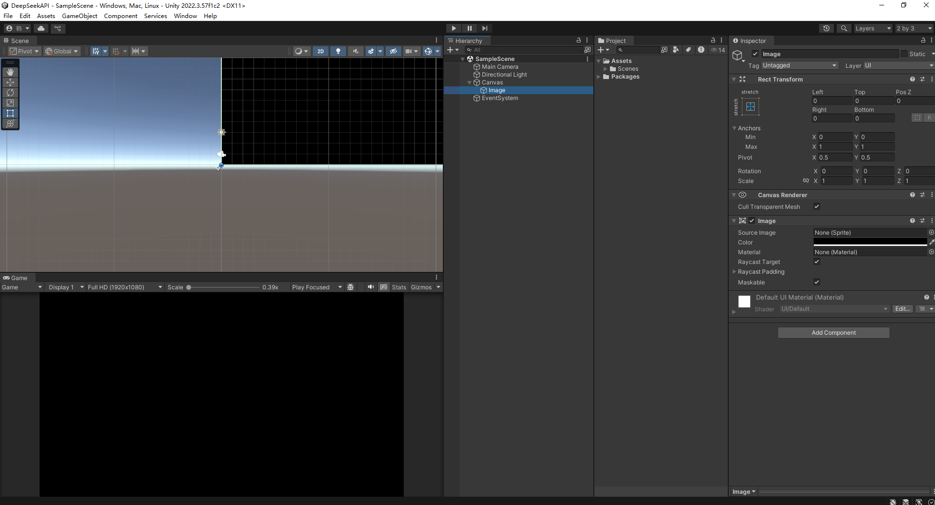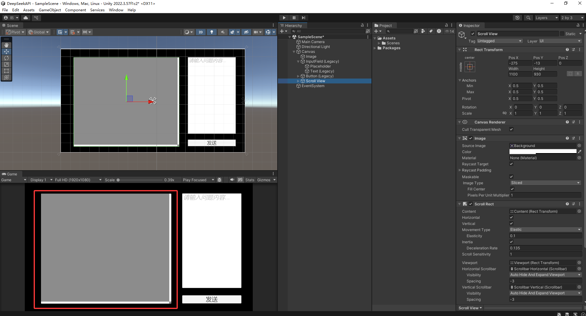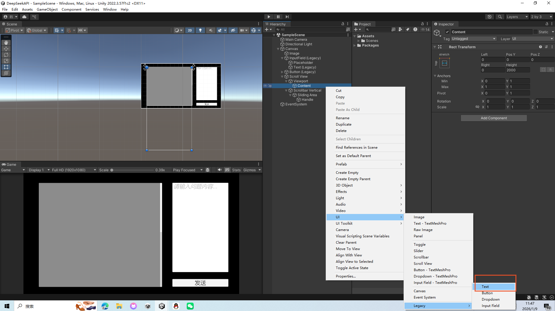 有了 DeepSeek的密钥之后 在Unity中创建一个项目