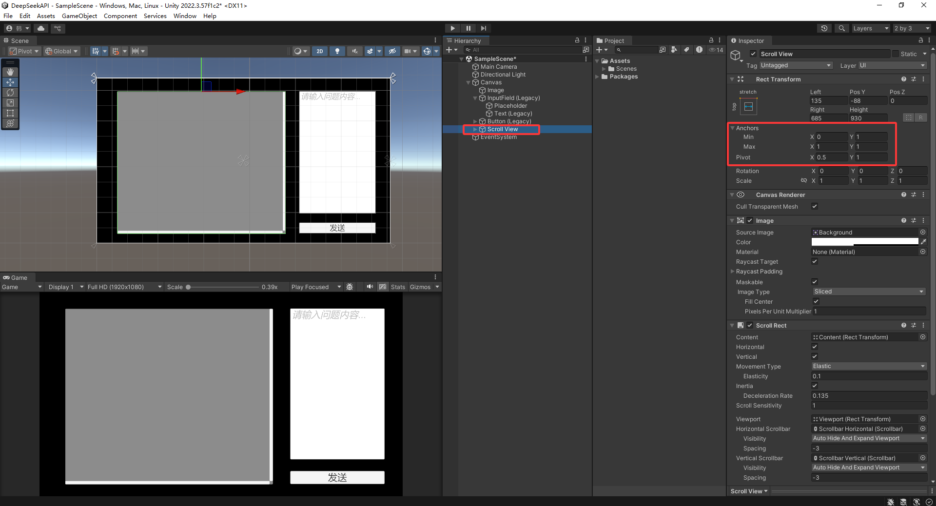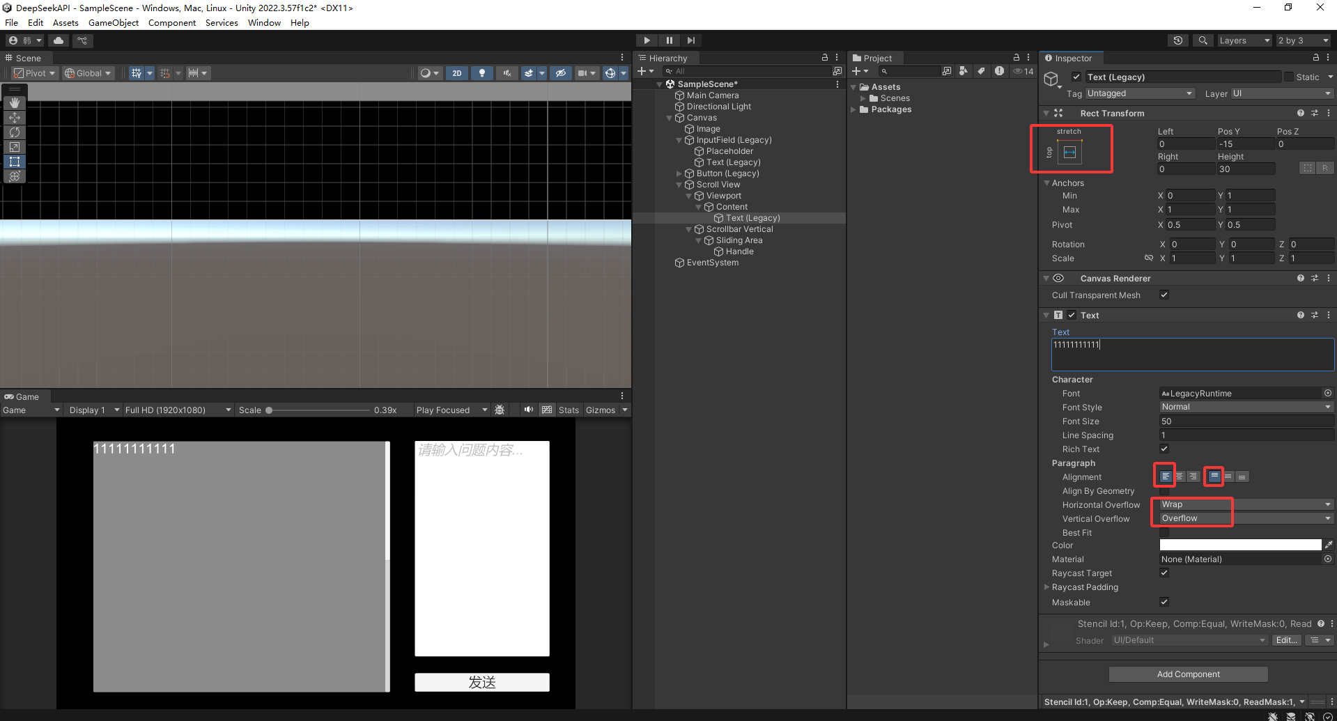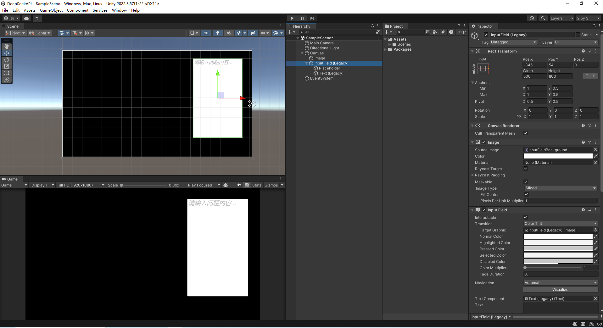 有了 DeepSeek的密钥之后 在Unity中创建一个项目