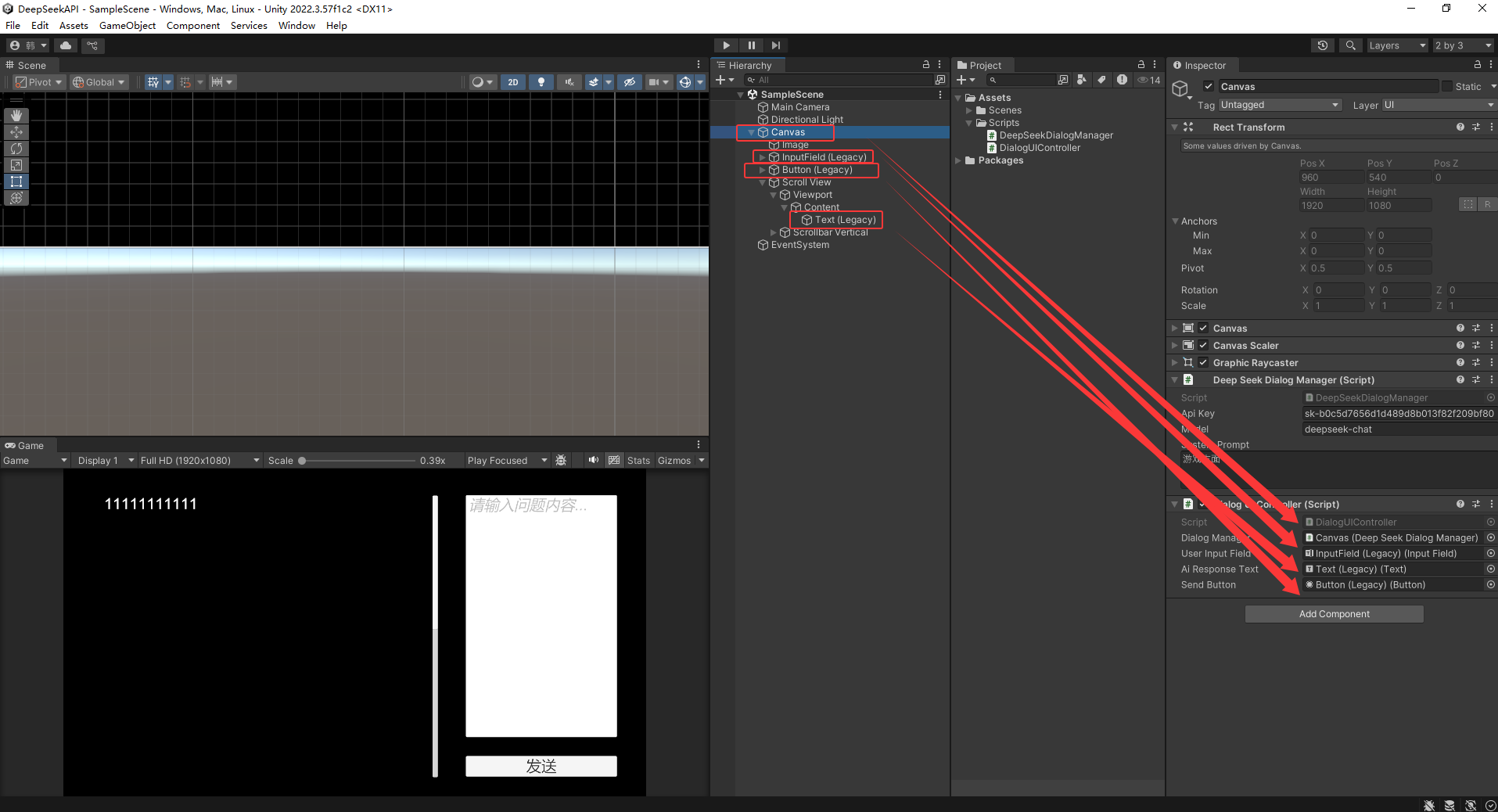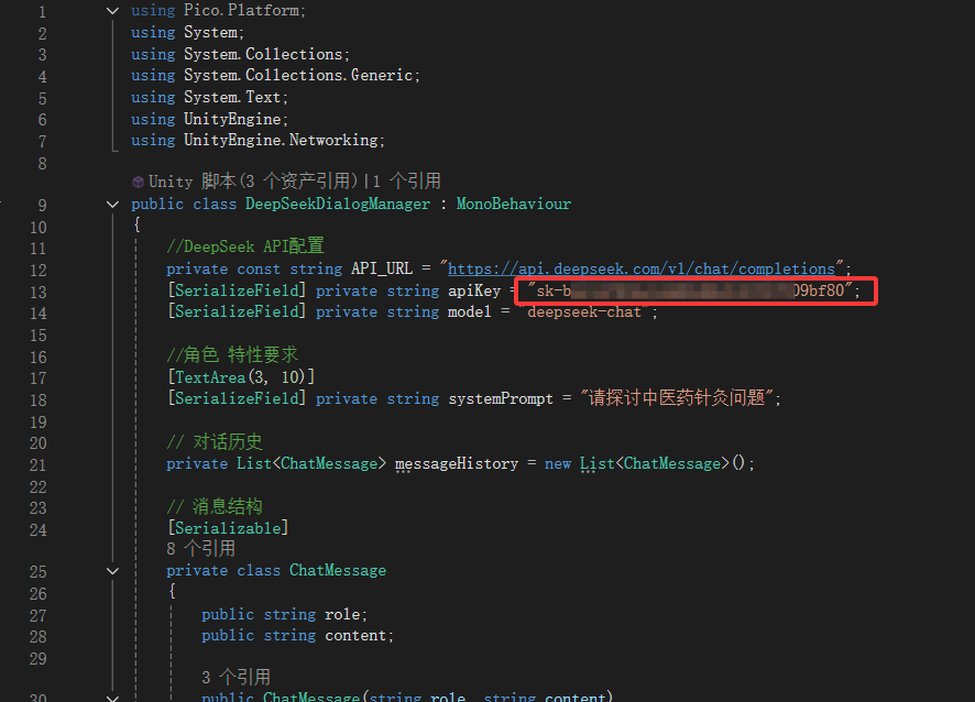 [SerializeField] private string apiKey = "自己的DeepSeek APIkey";